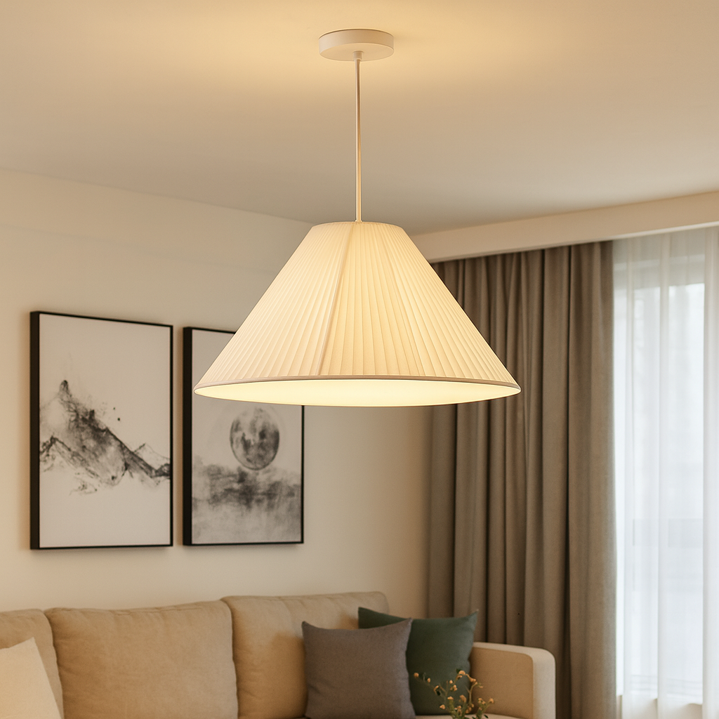 Dodajte sofisticiranost i toplinu svom prostoru uz Pendant Light D5304-600. Ovaj moderan luster izrađen je od metala i tkanine, a njegova bijela boja unosi svježinu i lako se uklapa u svaki enterijer – od klasičnih do savremenih.