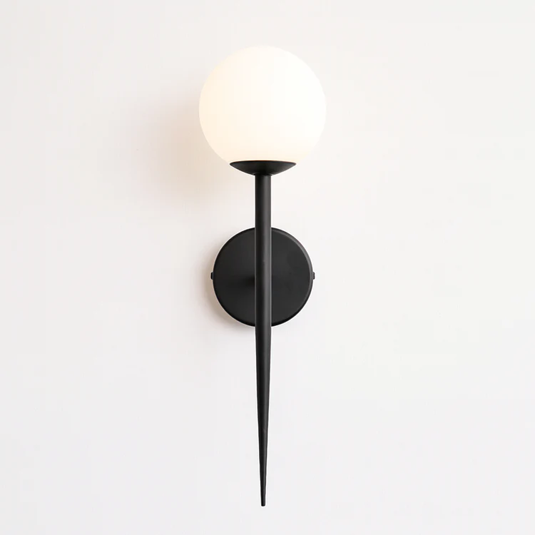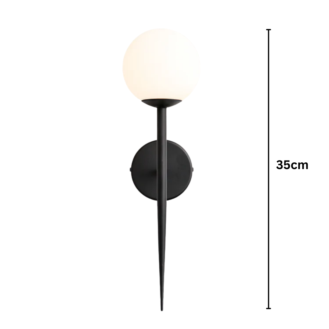 Unesite dozu elegancije i savremenog dizajna u svoj prostor uz zidnu lampu B6013/1 BK. Ovaj model se ističe minimalističkim, ali upečatljivim vertikalnim dizajnom, gdje se kombinacija crne metalne baze i mliječno bijele staklene kugle savršeno uklapa u različite stilove enterijera.
