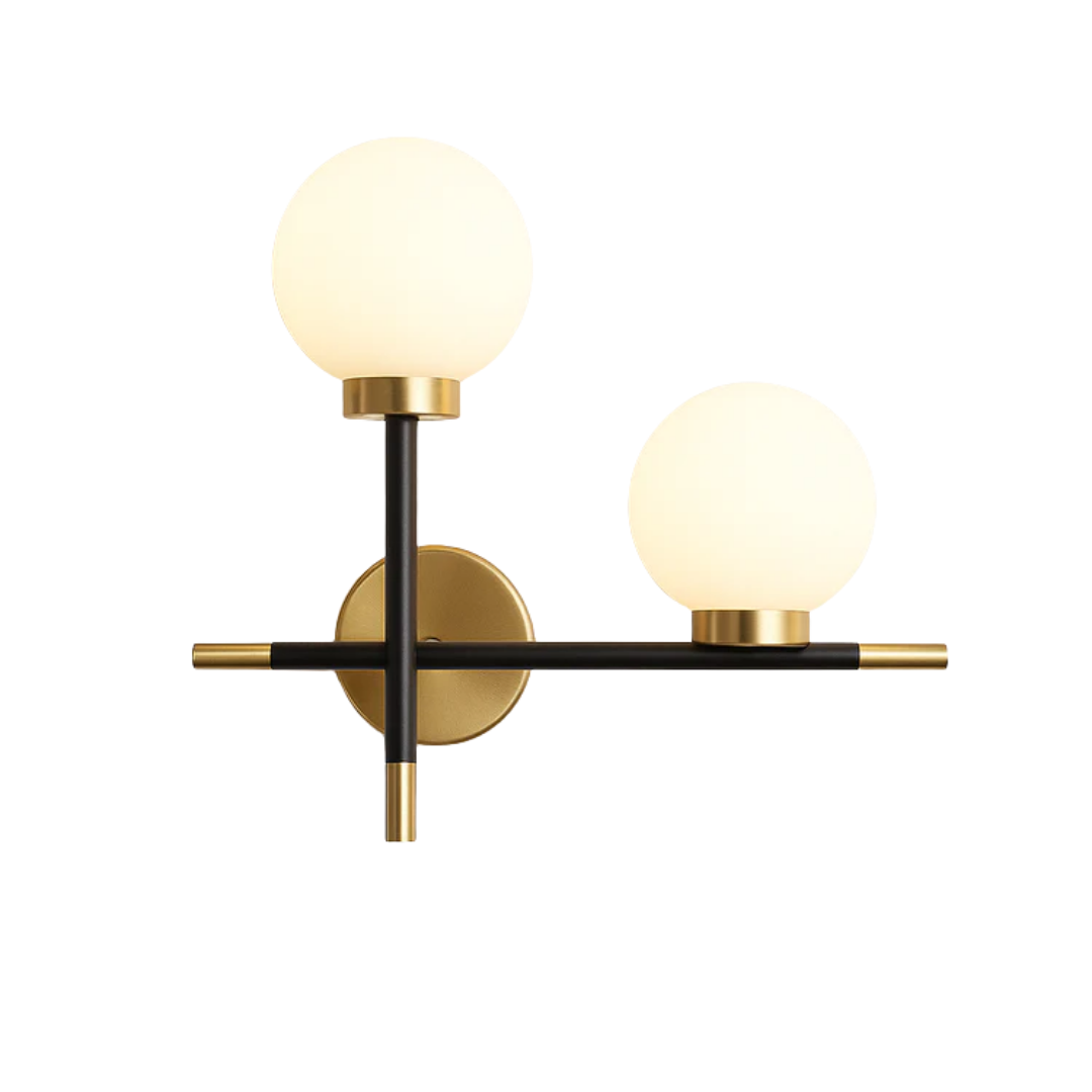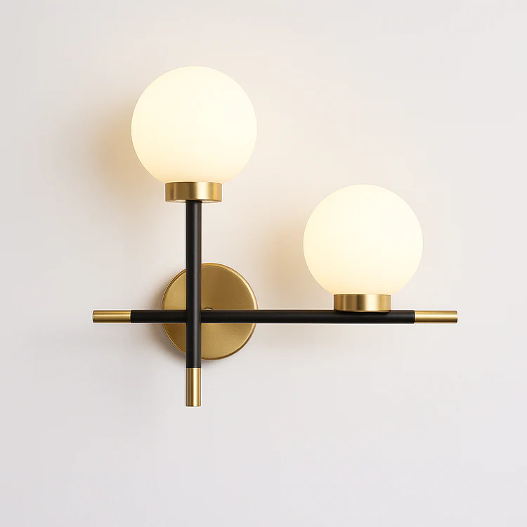 Sa dimenzijama L39 x H30 cm, ova zidna svjetiljka pruža savršen balans između dekoracije i funkcionalnosti. Asimetrični dizajn s dvije kugle raspoređene u različitim pravcima čini je idealnom za moderno uređene prostore koji traže stil s karakterom.
