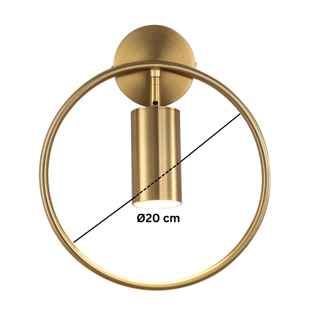 Izrađena od visokokvalitetnog metala, sa promjerom od 20 cm, lampa sadrži cilindrični izvor svjetlosti smješten unutar metalnog kruga, stvarajući efekat mekog, direktnog osvjetljenja – idealno za dekorativne zidove, galerijske prostore ili moderne dnevne i spavaće sobe.