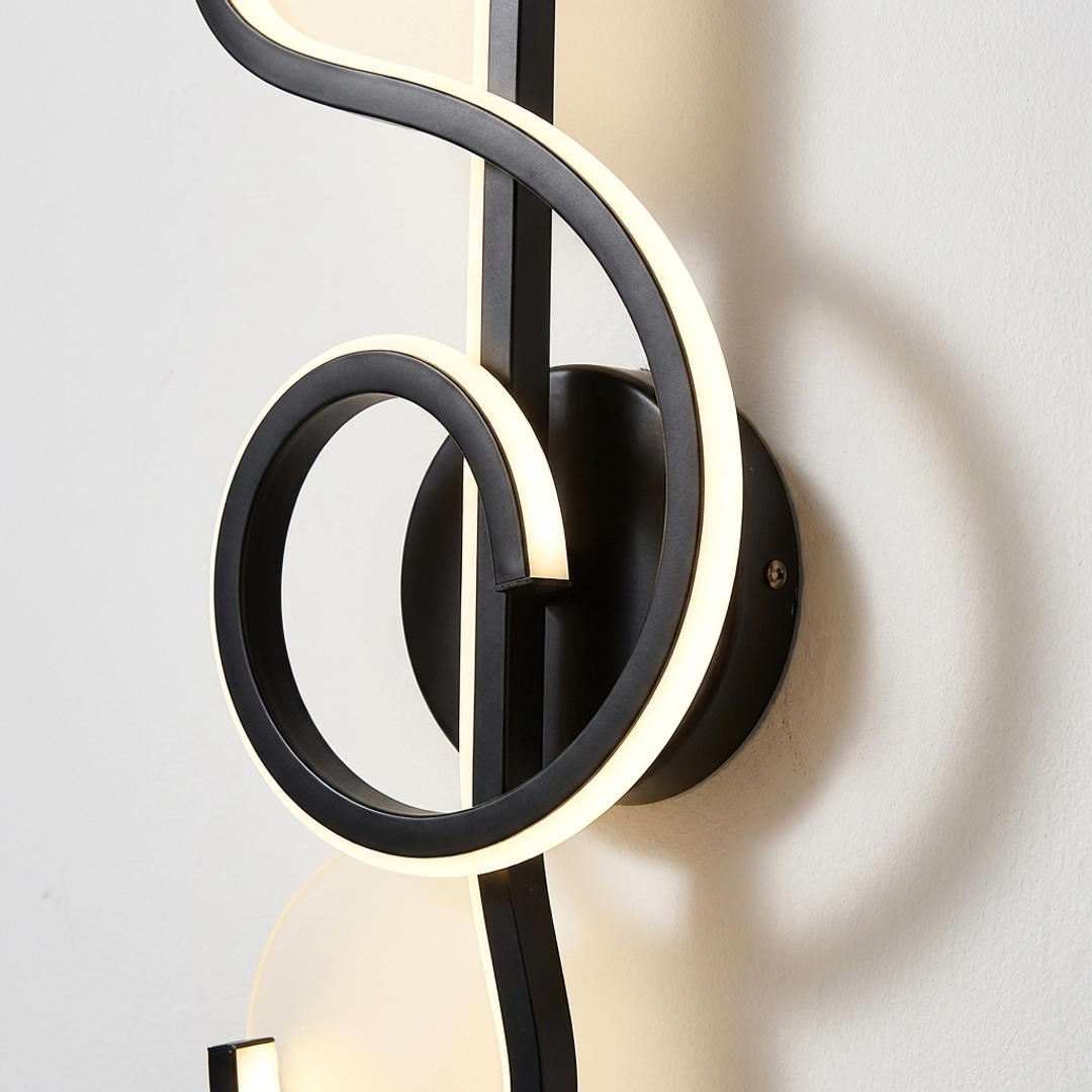 Dodajte umjetničku dimenziju i sofisticirani šarm svom prostoru uz zidnu LED lampu B6054. Sa svojim jedinstvenim dizajnom koji podsjeća na muzičku notu (violinski ključ), ova lampa nije samo izvor svjetlosti – već prava dekoracija za zid.