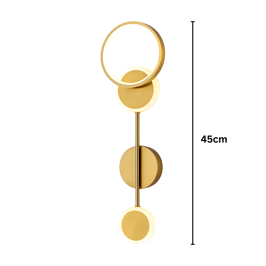 Istaknite jedinstven stil svog prostora uz zidnu LED lampu B6058, koja svojim geometrijskim dizajnom unosi eleganciju i umjetnički izraz u svaki enterijer. Ova moderna lampa izrađena je od visokokvalitetnog metala, s upečatljivom kombinacijom kružnih oblika i integrisanog LED osvjetljenja.