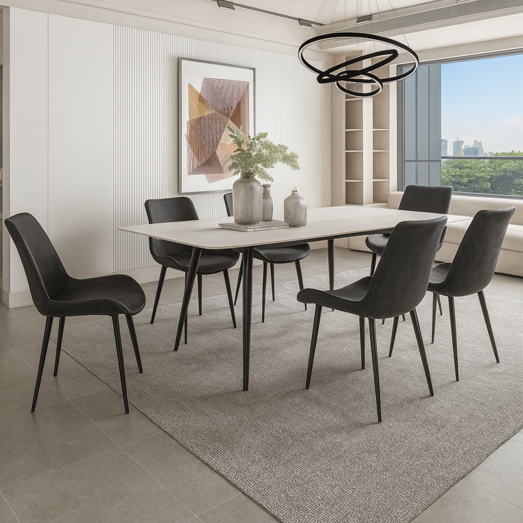 Elegantne metalne noge i okvir osiguravaju stabilnost i dodaju dašak modernog stila vašem prostoru. S ergonomskim dizajnom, zakrivljeni naslon savršeno pristaje vašoj kičmi, pružajući izvrsnu lumbalnu podršku i čineći svaki obrok ugodnijim.