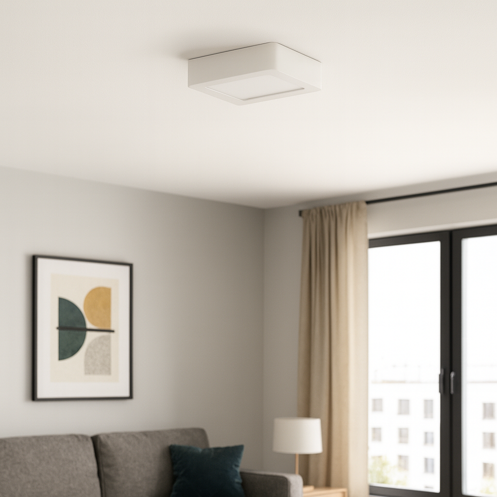 LED plafonjera snage 6W u elegantnom kvadratnom dizajnu pruža moderno, štedljivo i ravnomjerno osvjetljenje koje stvara prijatnu i prirodnu atmosferu u svakom prostoru. Zahvaljujući “backlit” tehnologiji i neutralno bijelom svjetlu (4000K–4500K), ova plafonjera je idealna za prostore gdje se traži balans između topline i jasnoće svjetla.