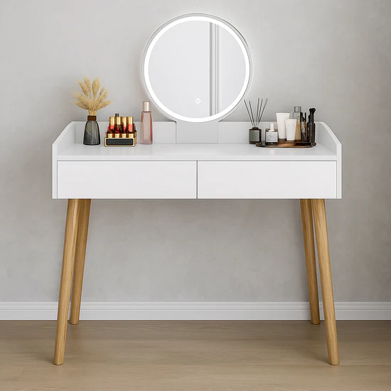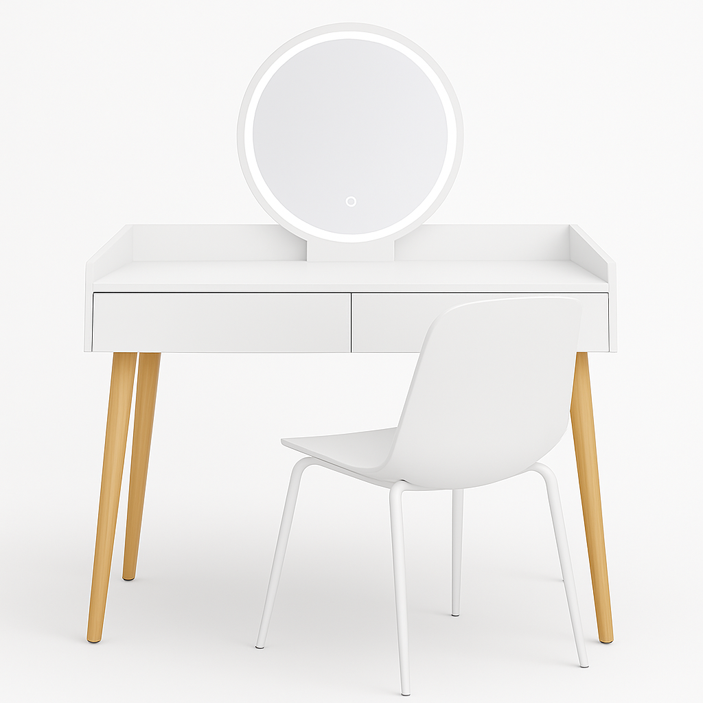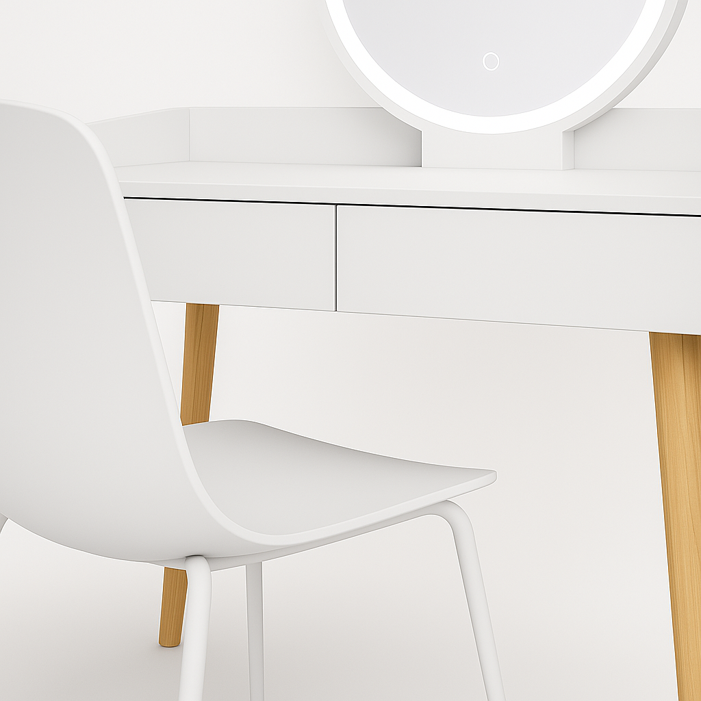 Verano stol kombinuje moderan minimalistički dizajn sa praktičnim rješenjima za organizaciju šminke i dodataka. Prostrana radna površina, diskretne ladice i integrisano LED ogledalo čine ga idealnim izborom za precizno šminkanje i svakodnevnu njegu.
