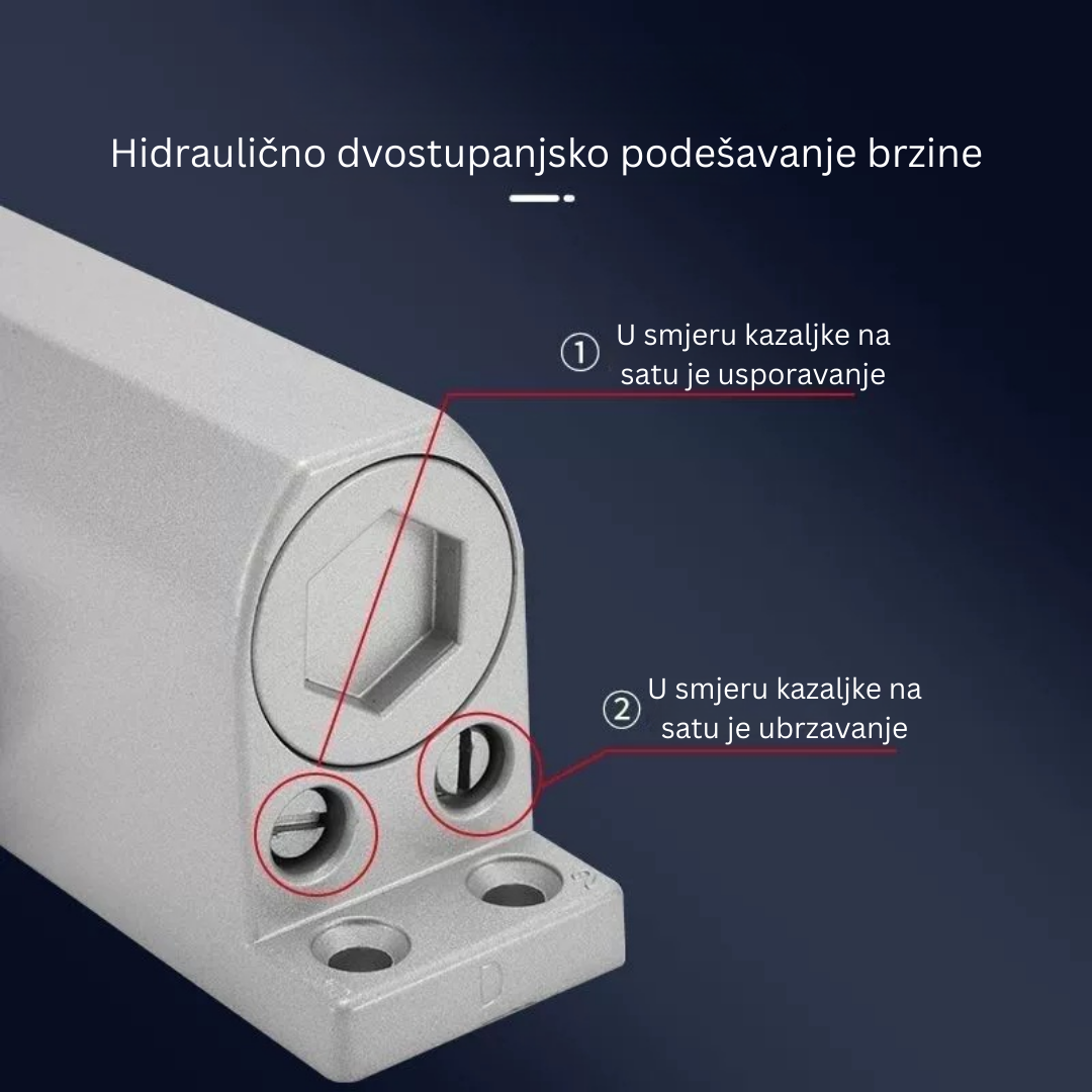Precizno Podešavanje Brzine (Hidraulično): Posjeduje hidraulično dvostupanjsko podešavanje brzine zatvaranja: