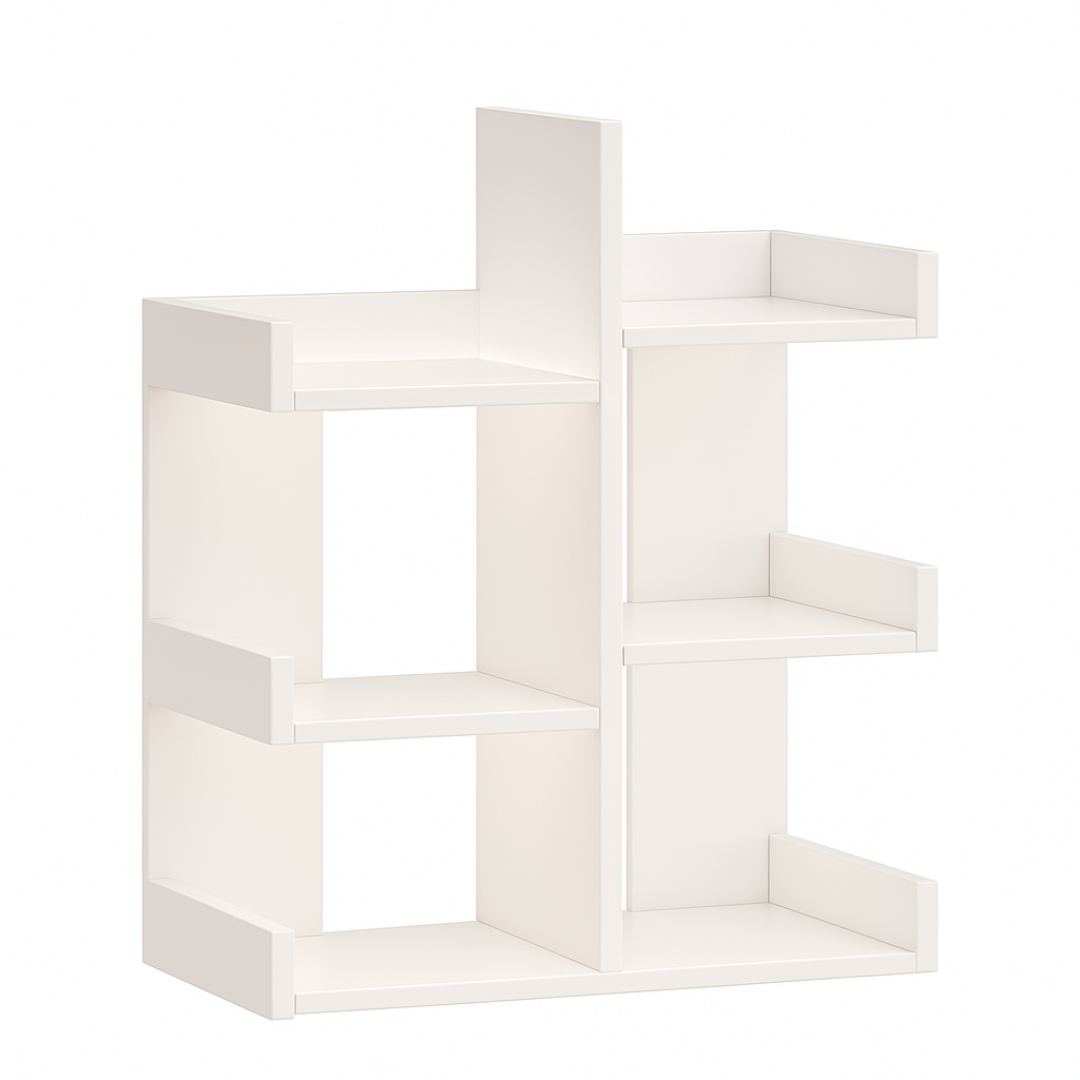 Njen jedinstveni, asimetrični dizajn ne samo da privlači poglede, već nudi i obilje prostora za vaše knjige, biljke, fotografije i omiljene dekoracije.