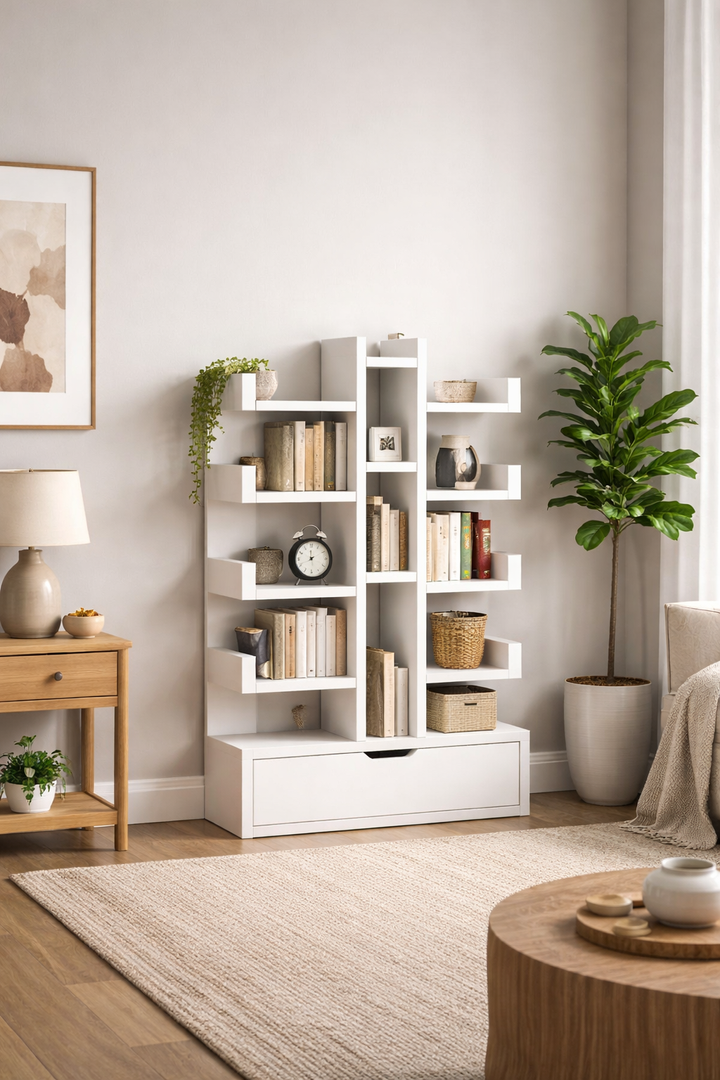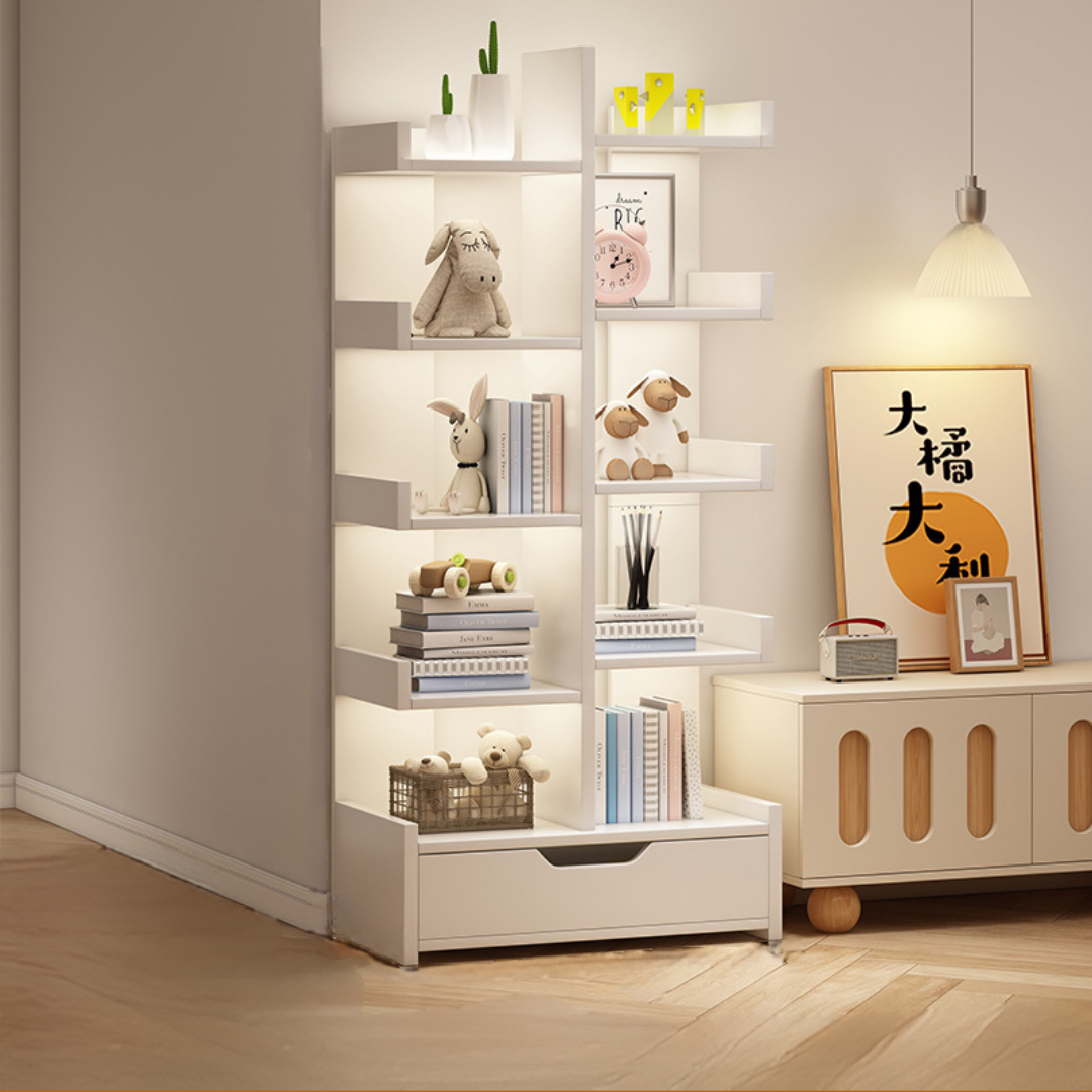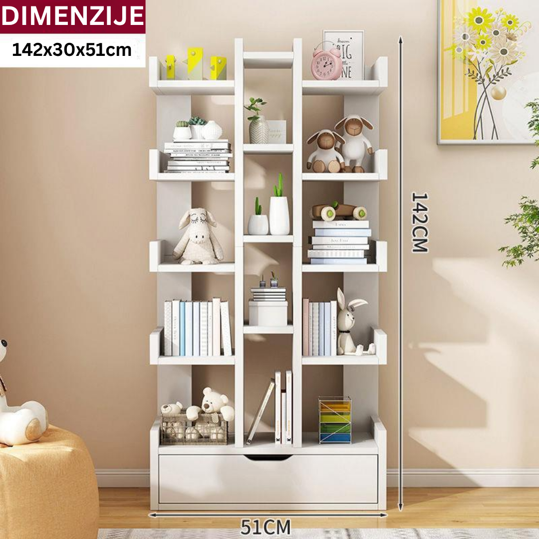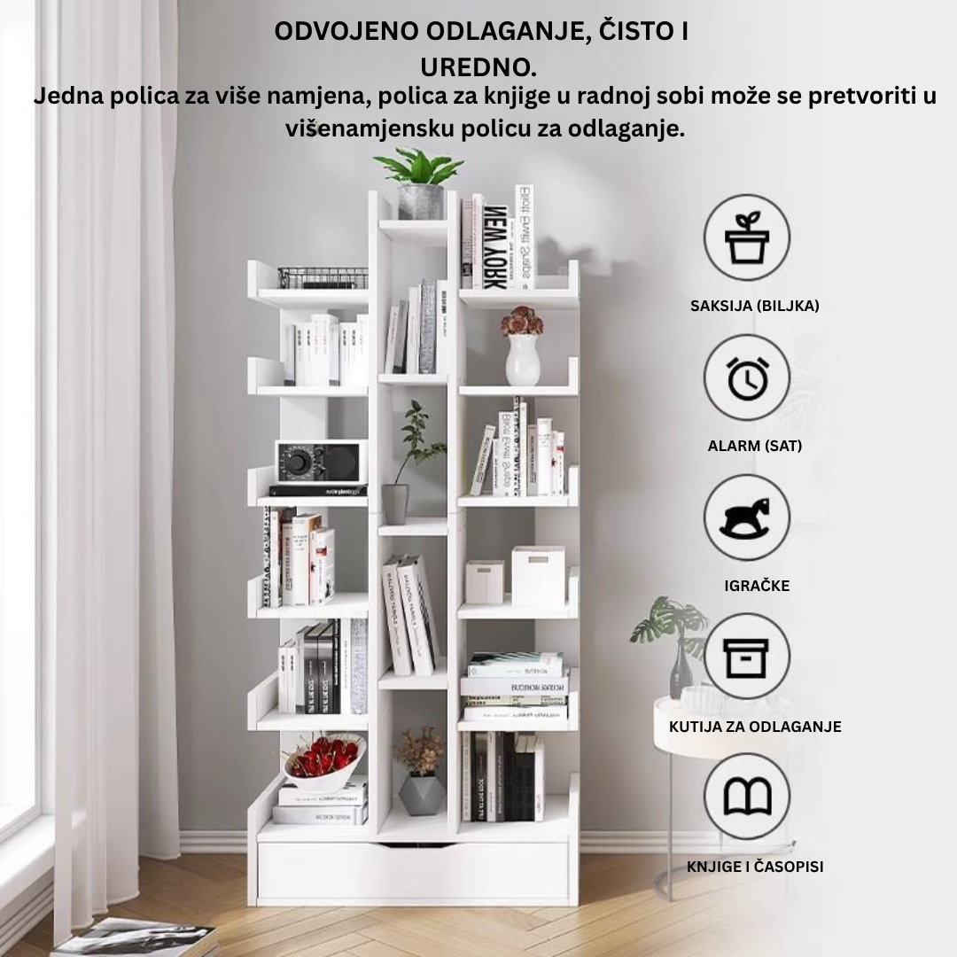 S 10 otvorenih odjeljaka, ova polica je idealna za izlaganje vaše kolekcije knjiga, umjetničkih predmeta, biljaka i fotografija. Prostrana ladica na dnu savršena je za odlaganje punjača, dokumenata, igračaka ili bilo čega drugog što želite uredno pospremiti.