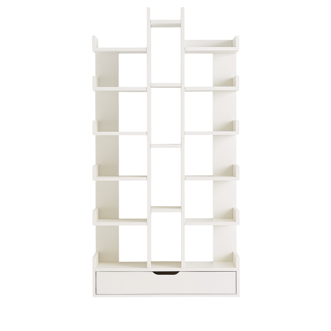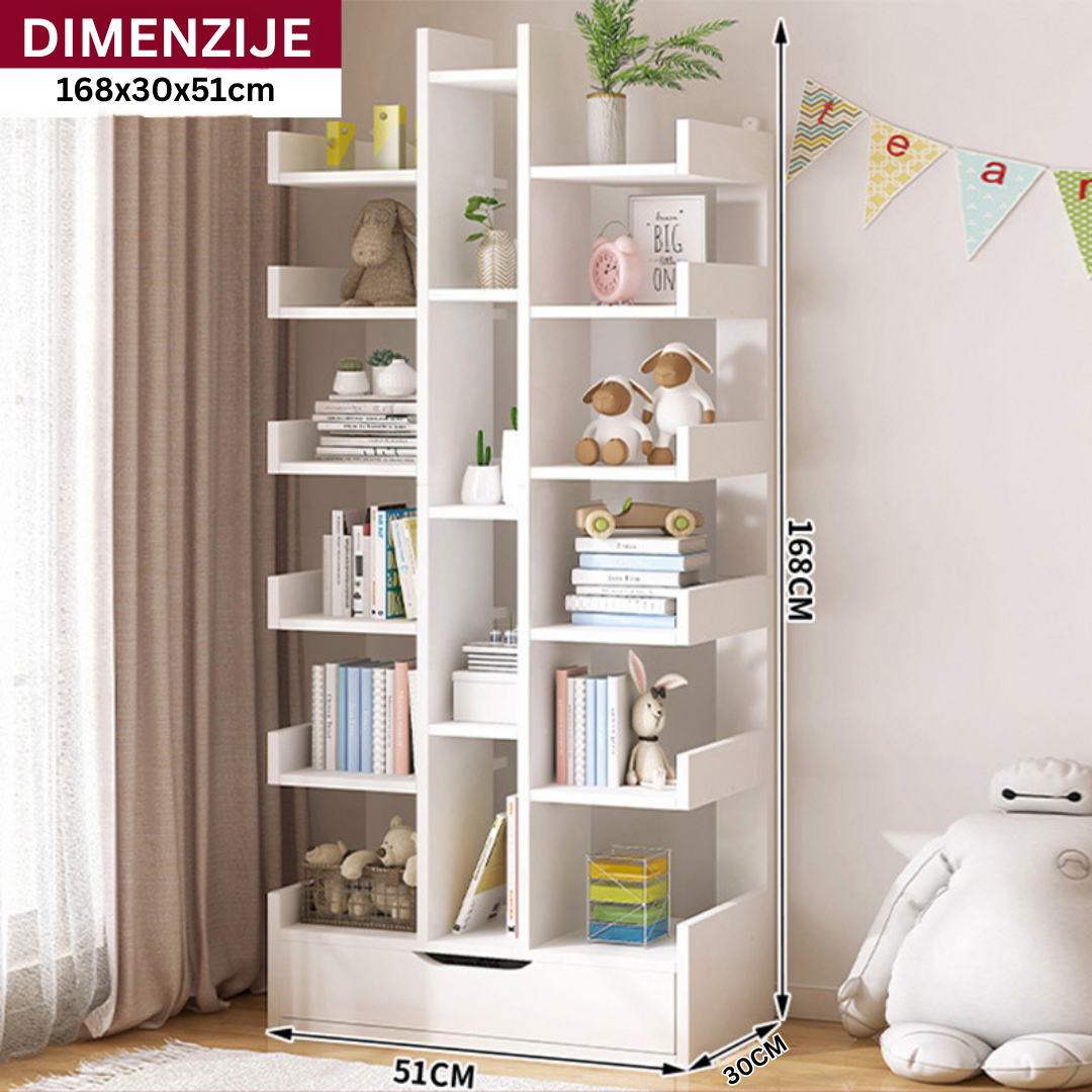 Sa 13 strateški raspoređenih otvorenih odjeljaka, ova polica je san svakog organizatora. Savršena je za izlaganje vaše omiljene literature, dragocjenih uspomena, sobnih biljaka i umjetničkih predmeta. Kao dodatan bonus, prostrana ladica na dnu pruža diskretan prostor za odlaganje punjača, dokumenata i svih onih sitnica koje želite držati uredno, ali skriveno od pogleda.