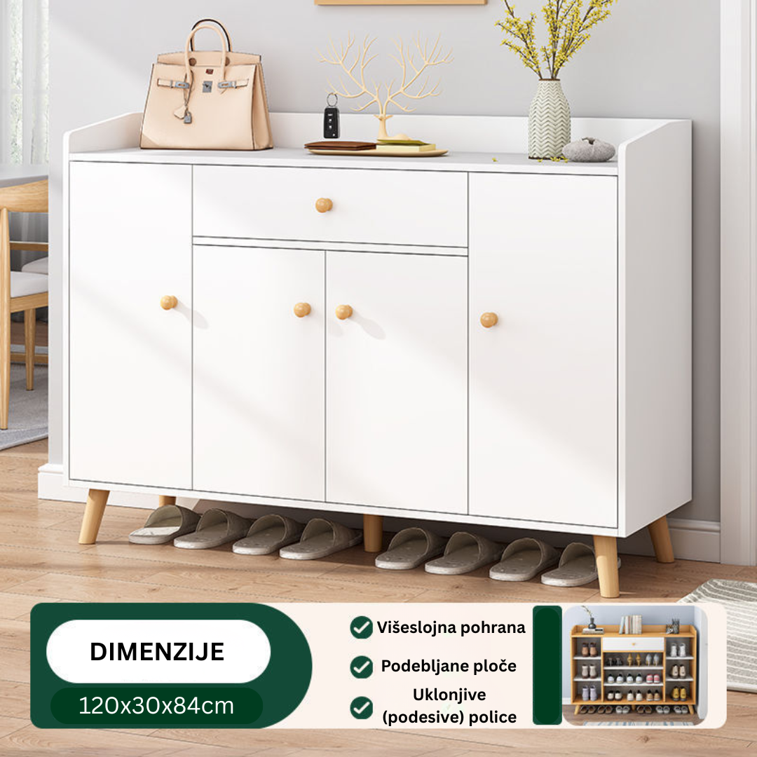 Unesite red i eleganciju u svoj dom već od ulaznih vrata! Zaboravite na razbacanu obuću i nered u hodniku. Naša moderna bijela komoda je savršen spoj funkcionalnosti i stila, dizajnirana da maksimalno iskoristi prostor u vašem predsoblju, a pritom izgleda fantastično.