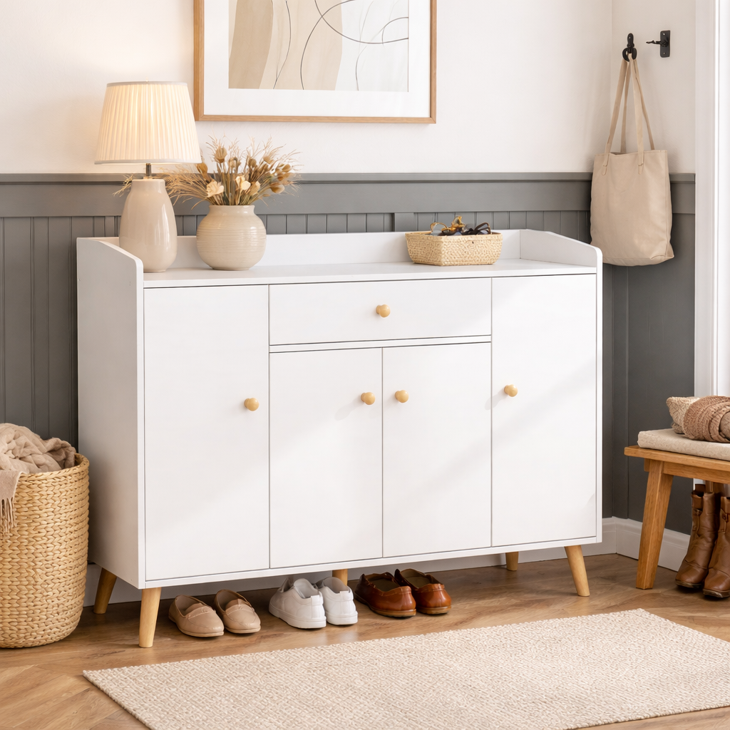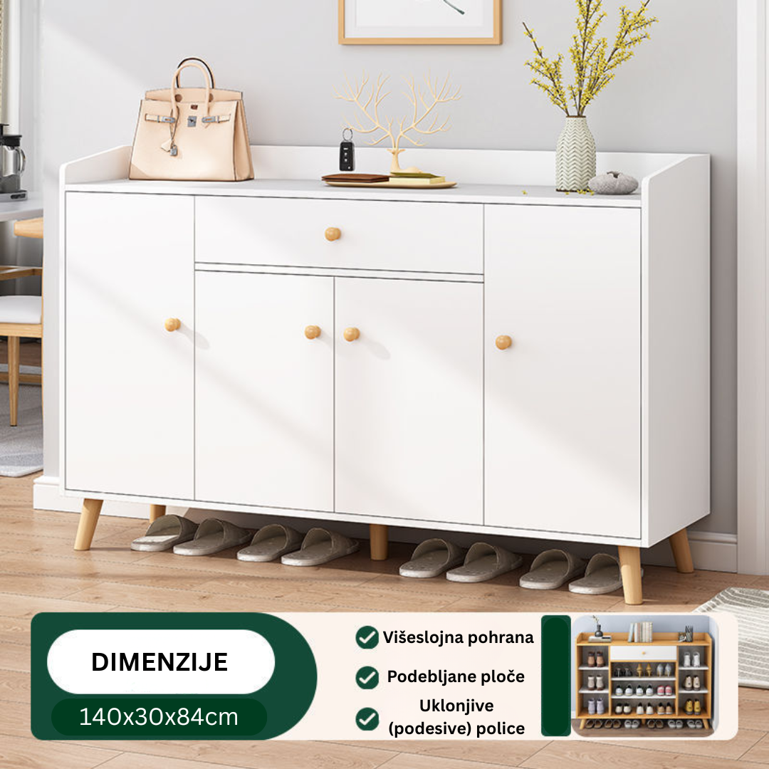 Unesite red i eleganciju u svoj dom već od ulaznih vrata! Zaboravite na razbacanu obuću i nered u hodniku. Naša moderna bijela komoda je savršen spoj funkcionalnosti i stila, dizajnirana da maksimalno iskoristi prostor u vašem predsoblju, a pritom izgleda fantastično.