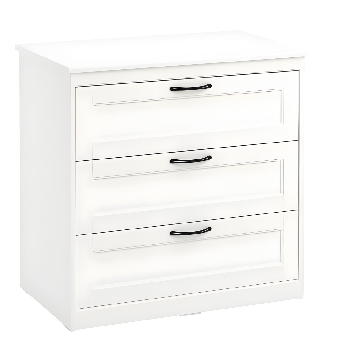 Ova prostrana komoda s tri duboke ladice nudi izdašan prostor za pohranu u klasičnom, ali osvježenom stilu. Idealna je za spavaće sobe, dječje sobe ili garderobe.