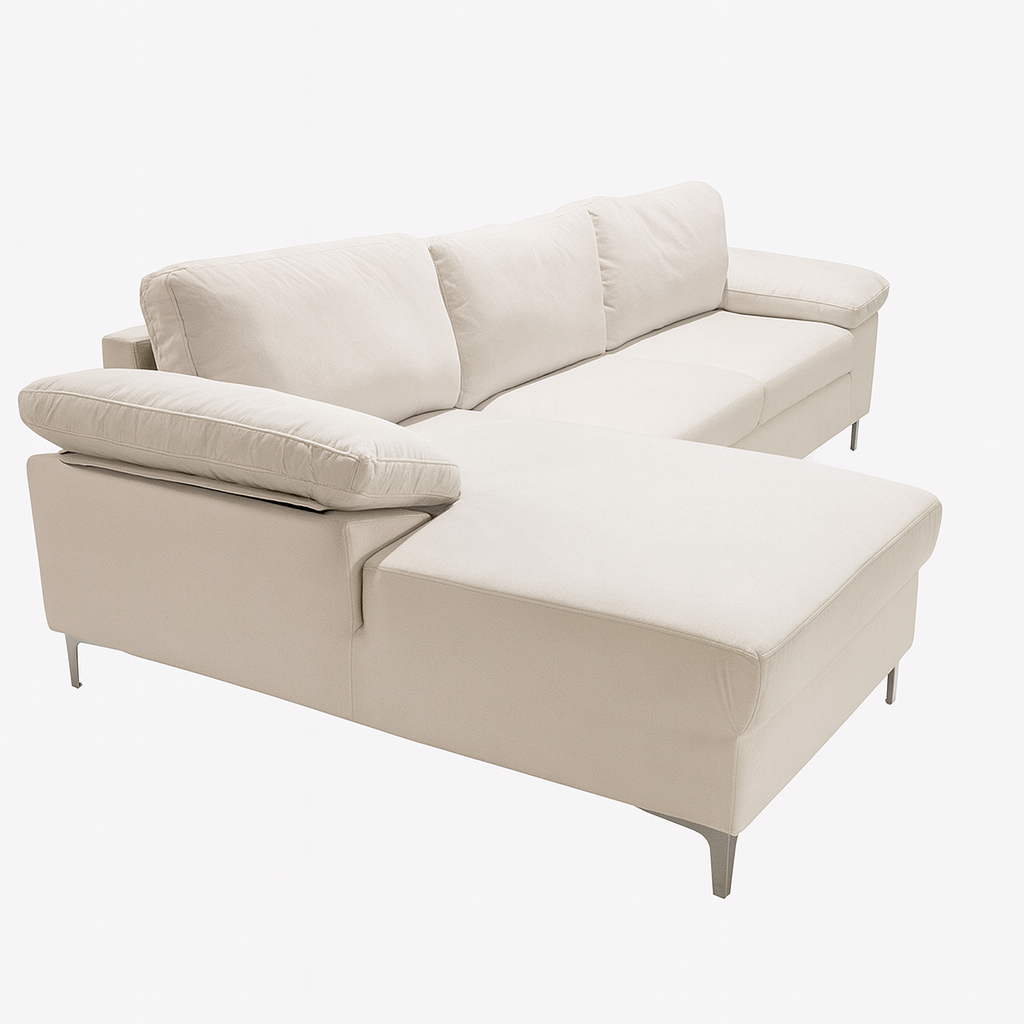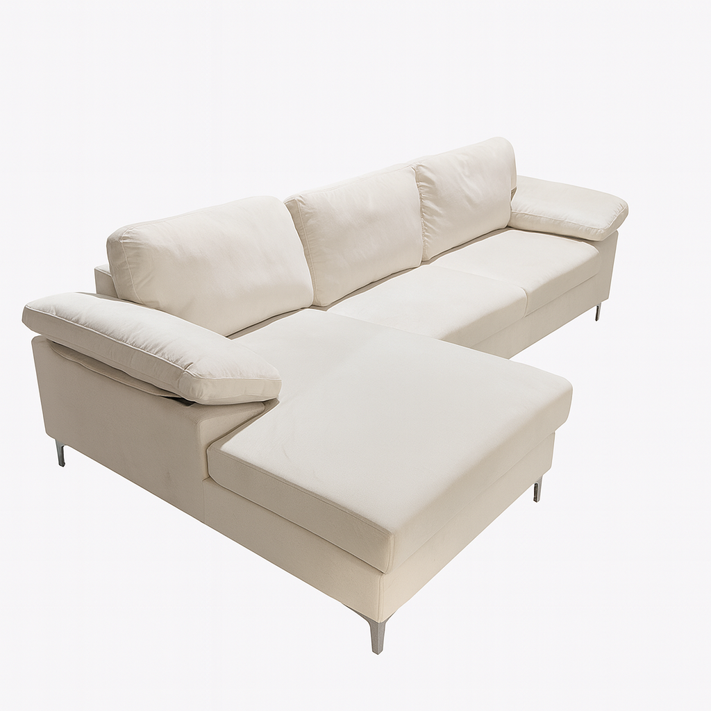 Unesite dozu luksuza i savremene udobnosti u svoj dnevni boravak s KAVEAH ugaonom garniturom – savršenim spojem modernog dizajna, funkcionalnosti i vrhunske izrade. Ova L-forma garnitura, presvučena u prefinjenu baršunastu tkaninu u elegantnoj bež boji, nudi ne samo estetiku već i maksimalnu udobnost za svakodnevni odmor i druženje.
