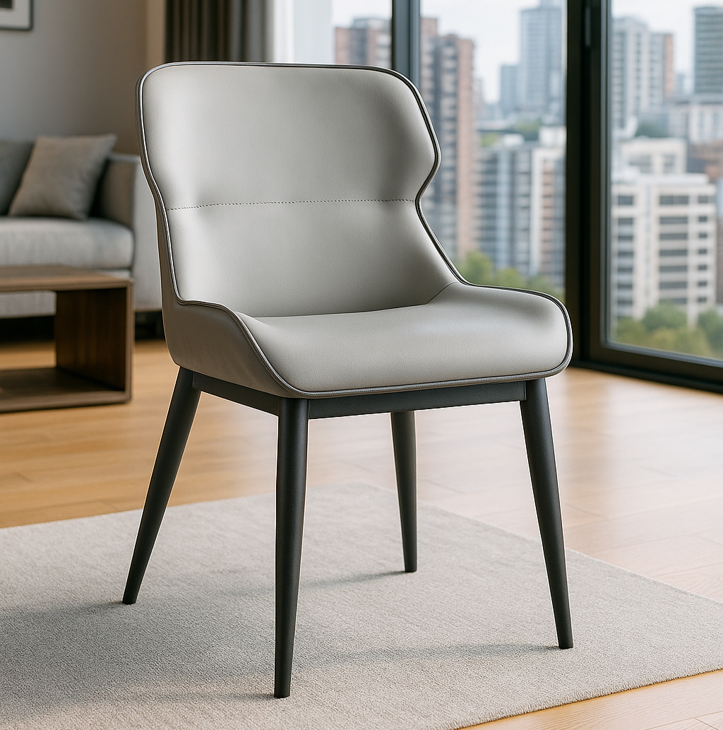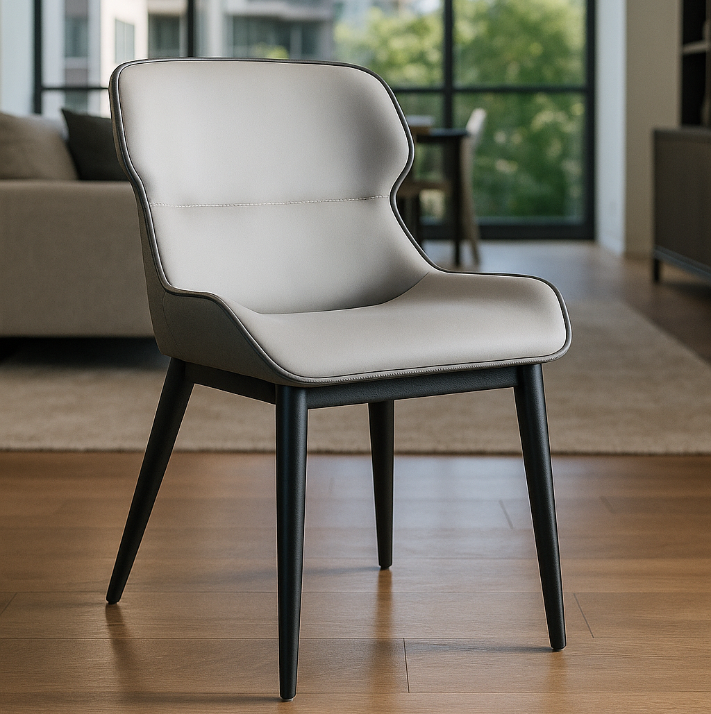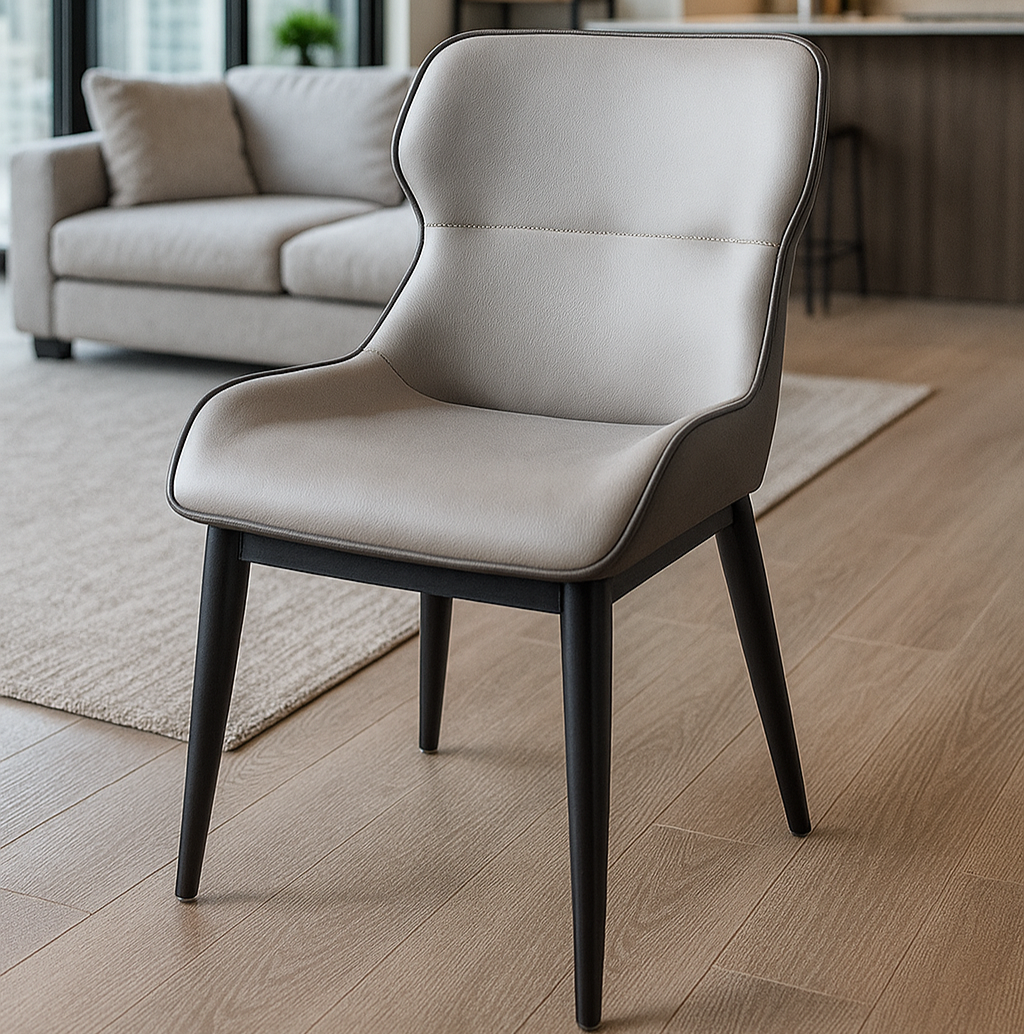 Izrađena od kvalitetnih materijala, stolica X009 spaja elegantno sivo sjedište sa čvrstim drvenim nogama u crnoj boji, čime stvara sofisticiran kontrast i lako se uklapa u različite stilove enterijera — od minimalističkog do skandinavskog.