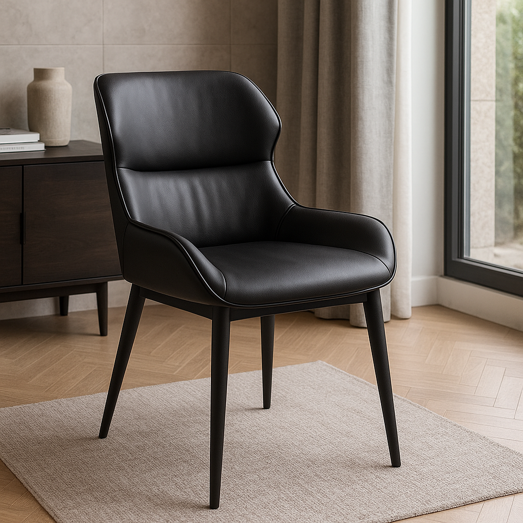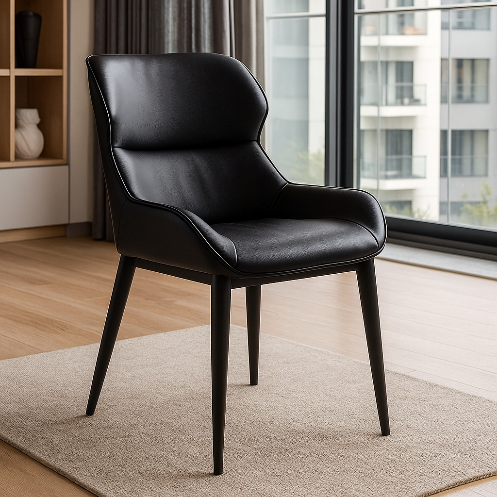 Crne noge dodatno naglašavaju sofisticiran dizajn, čineći ovu stolicu idealnim komadom za trpezarije, kancelarije, restorane i moderne dnevne boravke.