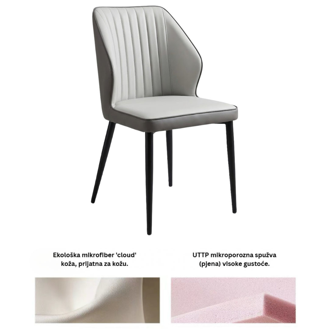 Stabilnost i Stil: Tanke, ali izuzetno čvrste crne metalne noge daju stolici stabilnost i doprinose njenom modernom, minimalističkom izgledu.