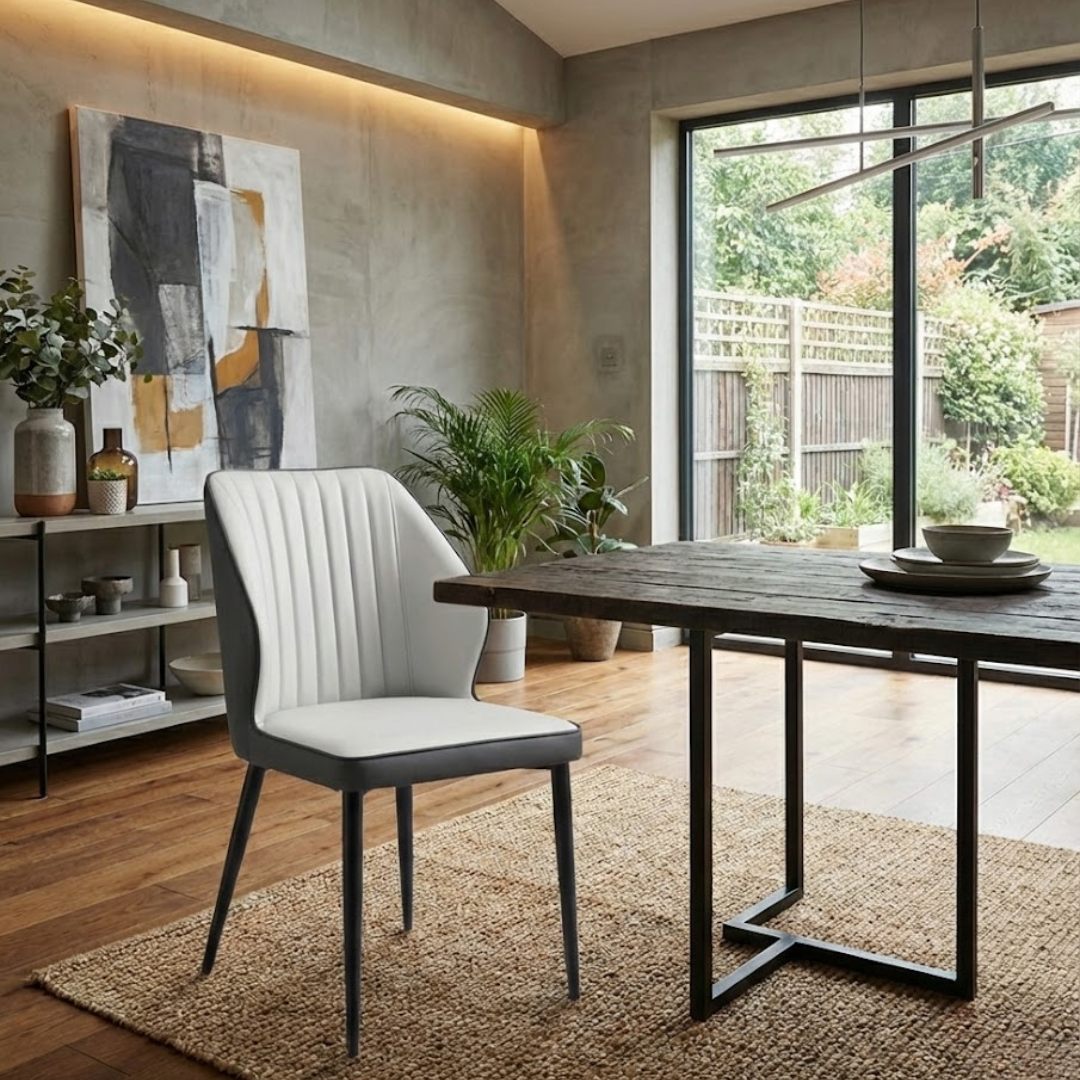 Dizajnirana sa fokusom na detalje, FYNOR stolica se ističe elegantnim vertikalnim štepovima na naslonu i suptilnom dvobojnom kombinacijom koja odiše profinjenošću. Bez obzira da li je kombinujete sa masivnim drvenim stolom ili modernim mramornim površinama, FYNOR će postati centralna tačka vašeg prostora.