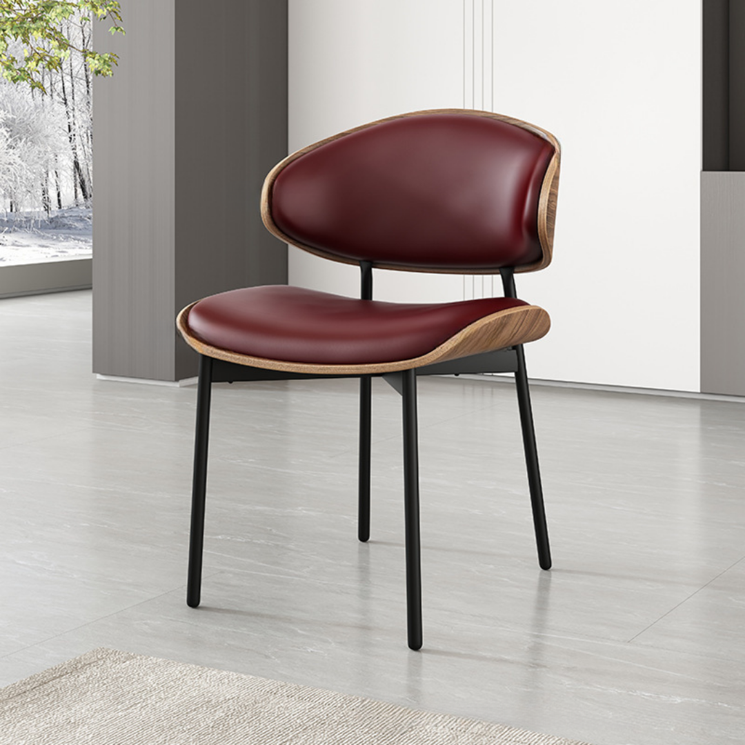 Ovaj model karakteriše elegantan spoj toplotno savijenog drveta (u boji oraha) i izdržljive presvlake od eko-kože, postavljenih na čvrst metalni okvir.