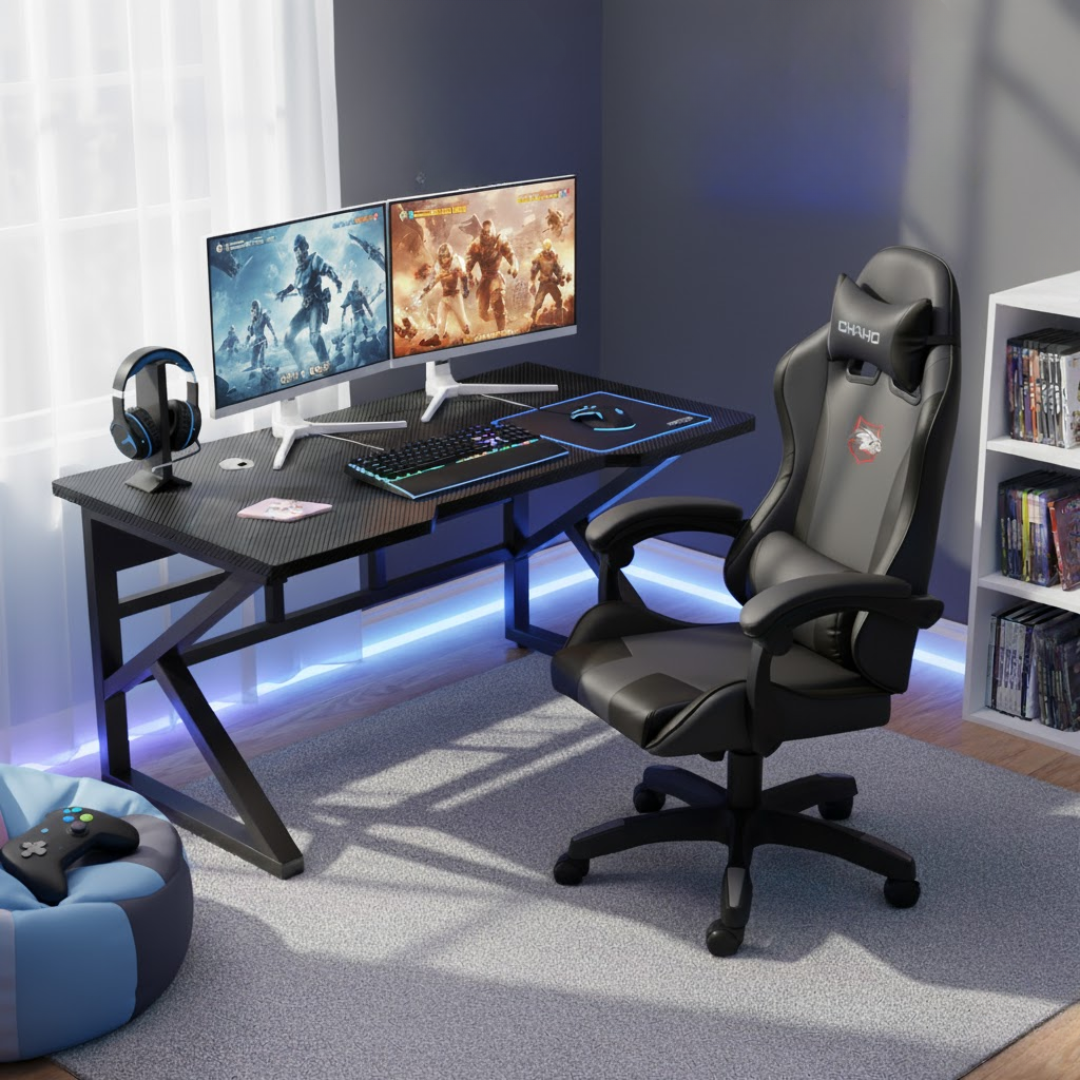 Podignite svoje gaming iskustvo na najviši nivo uz ovaj fantastični set, kreiran da pruži maksimalnu udobnost, funkcionalnost i stil! Kombinacija ergonomske masažne stolice CHAHO i prostranog gaming stola CHADO je sve što vam je potrebno za duge sate igranja ili rada bez umora.