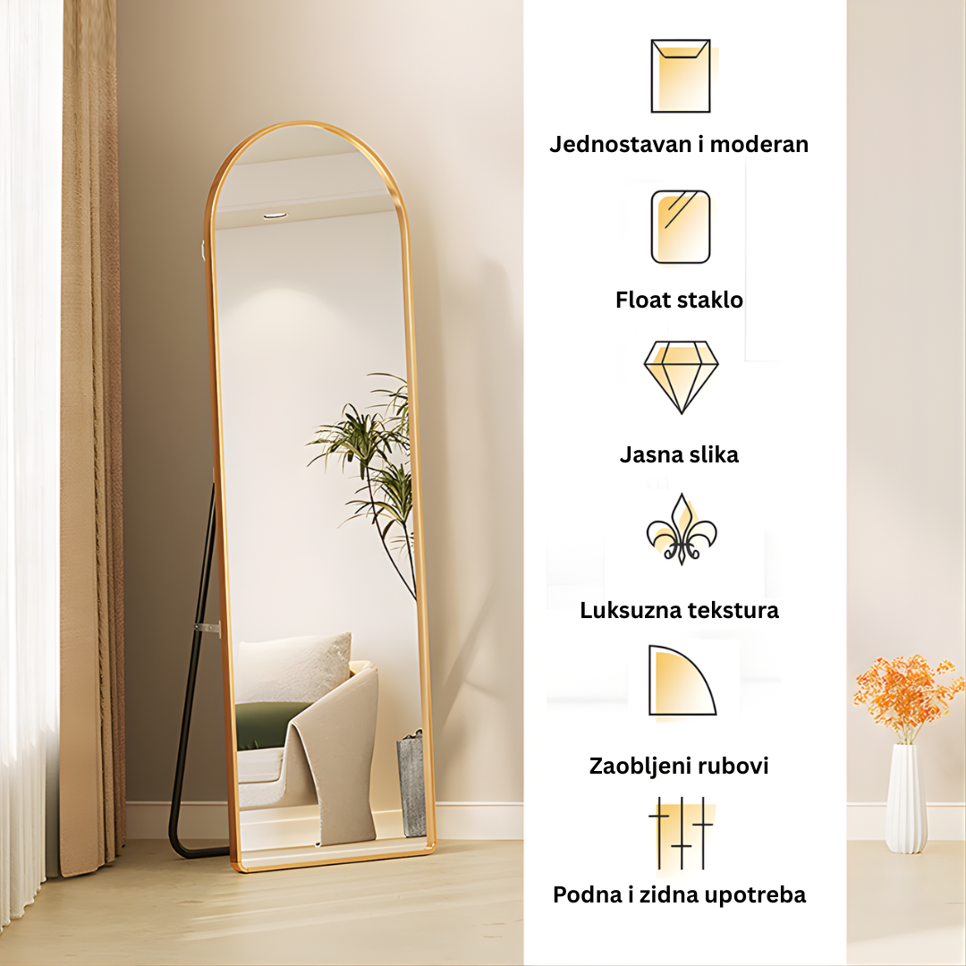 Unesite dašak luksuza i vizuelno proširite svoj prostor uz KYRO ogledalo. Sa svojim prepoznatljivim lučnim dizajnom i vrhunskom izradom, ovo ogledalo nije samo funkcionalan predmet, već centralni dekorativni komad koji se savršeno uklapa u moderne, minimalističke ili klasične enterijere.