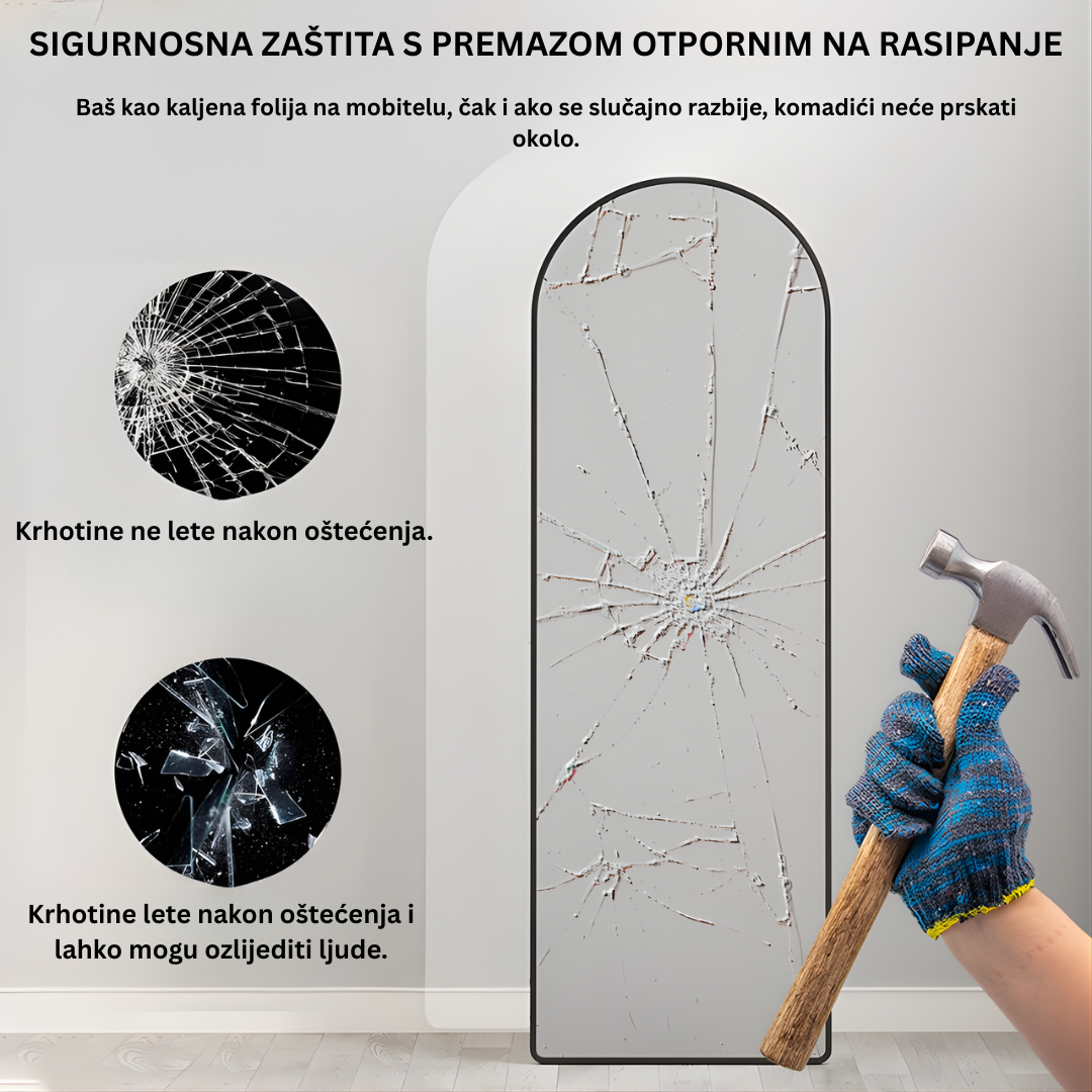 Napomena: Zbog sigurnosnog premaza, ovo ogledalo je idealan izbor za domove sa djecom ili kućnim ljubimcima.