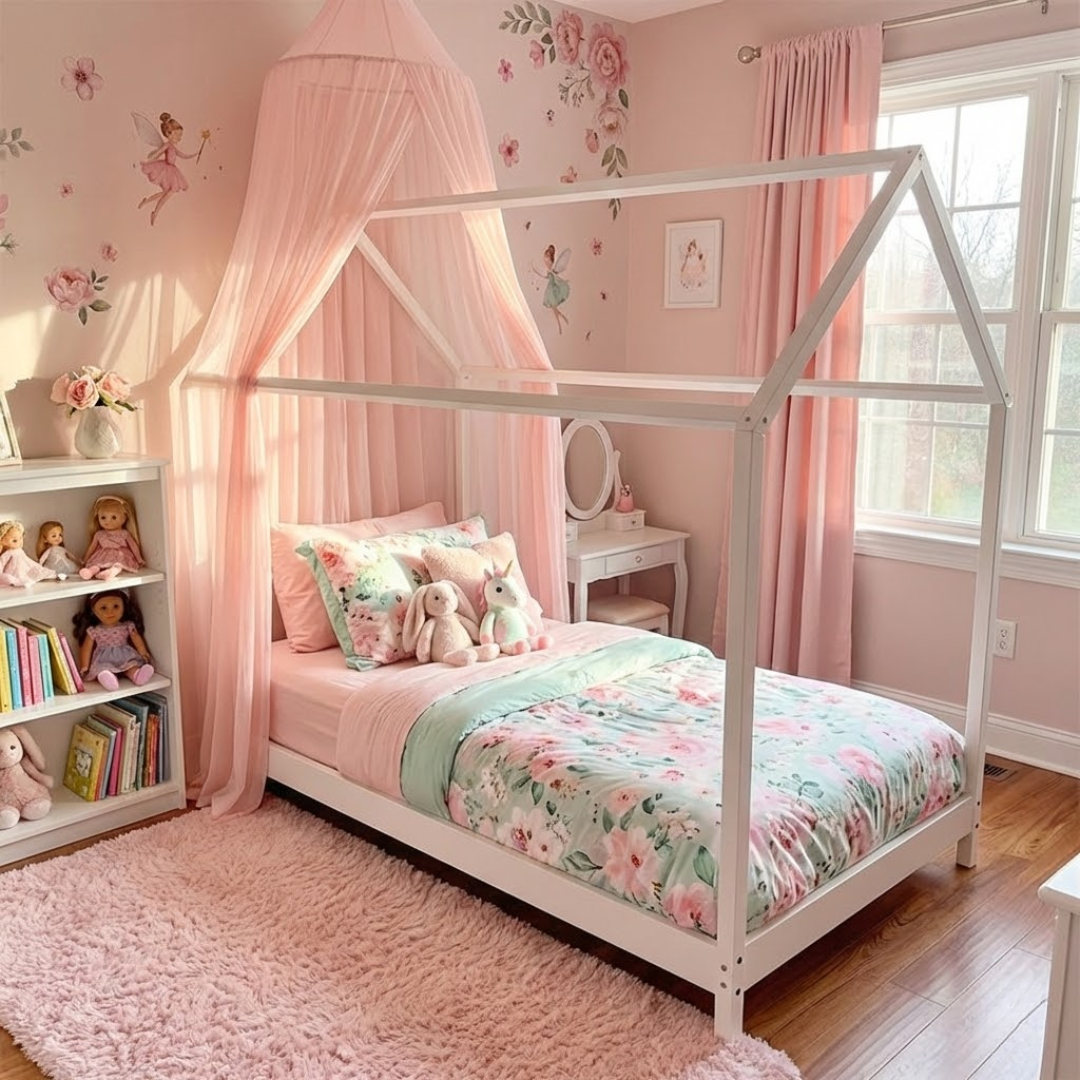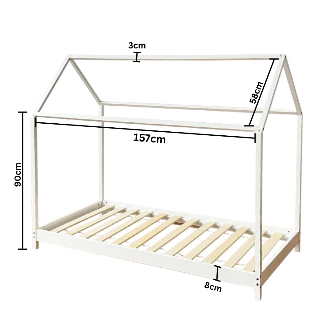 Dizajn iz bajke: Elegantan okvir u obliku kućice savršeno se uklapa u svaku modernu dječju sobu. Možete ga ukrasiti lampicama, zastoricama ili baldahinom kako biste stvorili unikatan kutak.