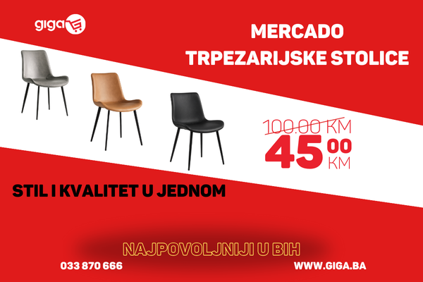 🔥 MEGA AKCIJA: Mercado stolice su trenutno dostupne po najpovoljnijoj cijeni u BiH! Ne propustite priliku da svoj prostor opremite stolicama koje su kvalitetne, moderne i iznimno pristupačne.