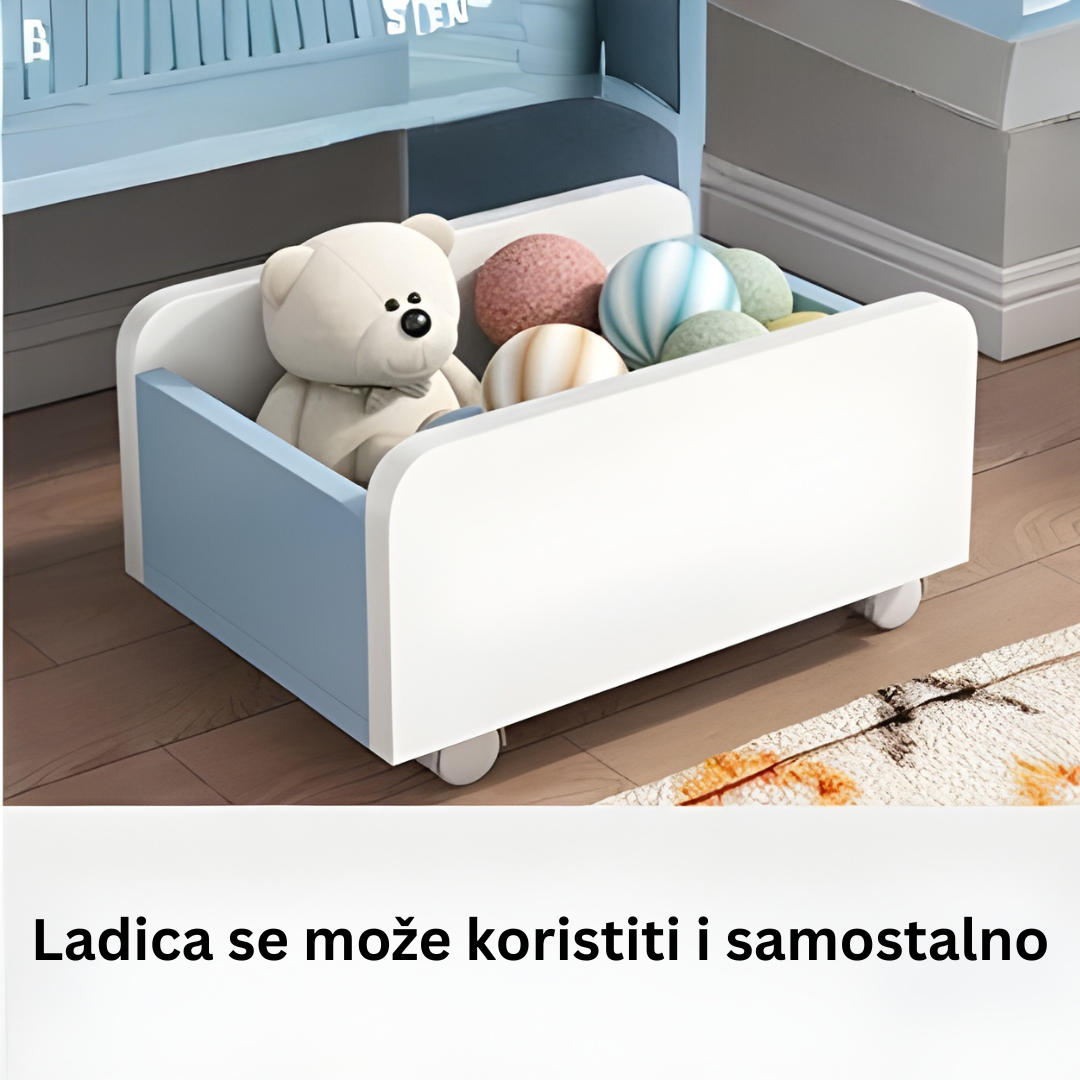 • Mobilna ladica: Velika ladica na dnu opremljena je točkićima koji se rotiraju za 360°, što omogućava djetetu da je lako izvuče i koristi samostalno bilo gdje u sobi.