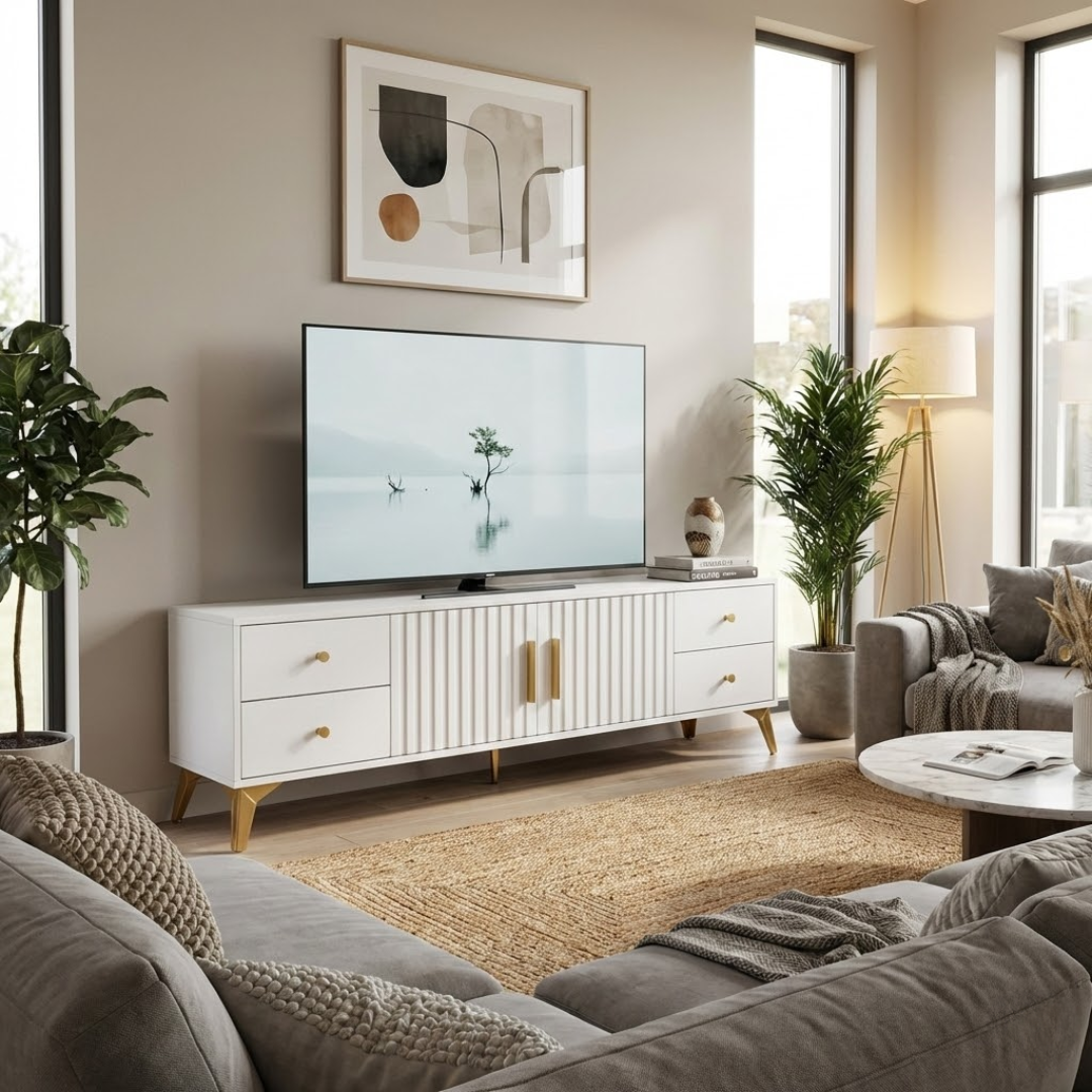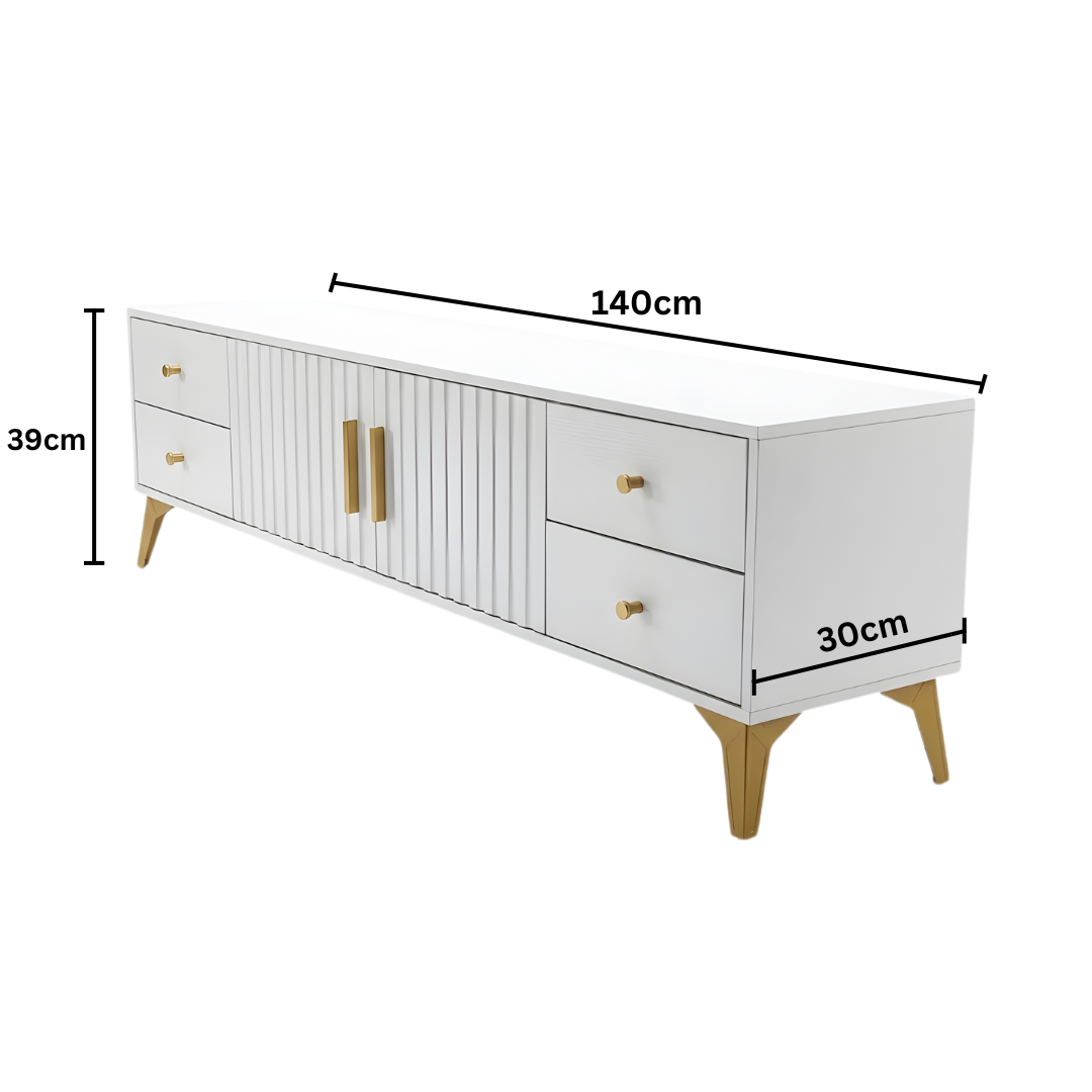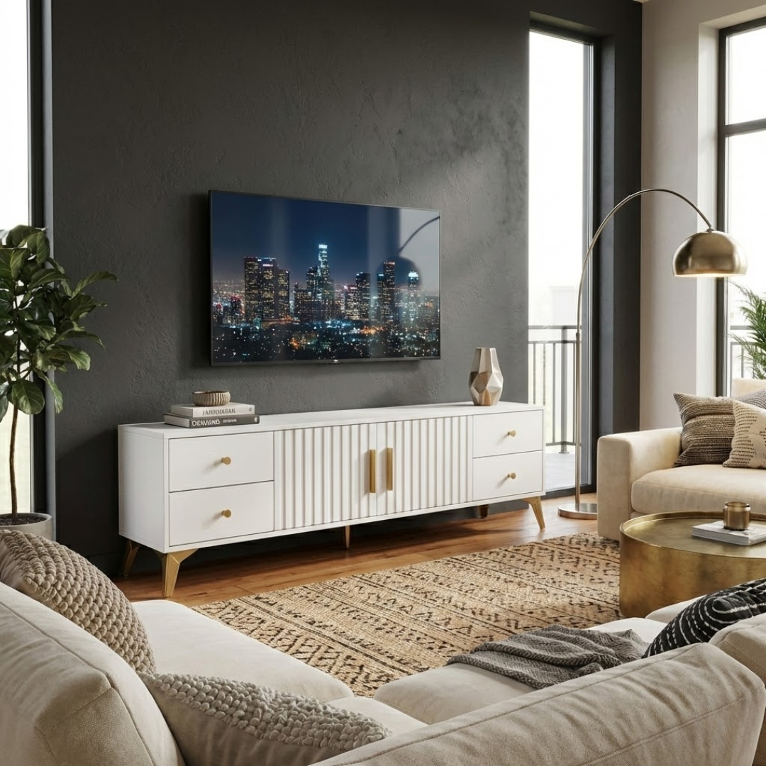 Unesite dašak luksuza i modernog minimalizma u svoj dom uz TV komodu Valente. Dizajnirana da spoji estetiku i maksimalnu funkcionalnost, ova komoda nije samo postolje za vaš TV, već centralni komad namještaja koji odiše stilom.