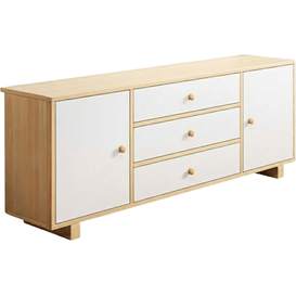 Unesite toplinu i red u svoj dom uz Miraveen, multifunkcionalnu komodu koja savršeno balansira između modernog minimalizma i praktičnosti. Dizajnirana u svijetlim tonovima prirodnog drveta s elegantnim bijelim frontama, Miraven se s lakoćom uklapa u dnevne boravke, spavaće sobe ili hodnike.