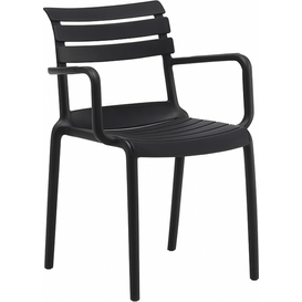 Odlikuje se modernim izgledom sa horizontalnim letvicama na sjedištu i naslonu, što pruža optimalnu podršku i udobnost. Integrisani nasloni za ruke dodatno povećavaju osjećaj ugodnosti tokom sjedenja. Lagana, ali stabilna konstrukcija omogućava lako premještanje i skladištenje.