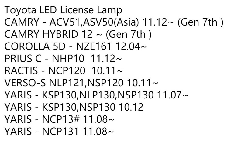 LED Paneli Svjetlo za tablicu Toyota Camry