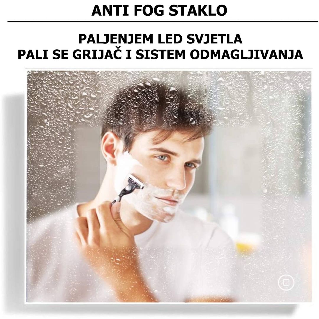 Antifog funkcija: Ogledalo je opremljeno tehnologijom koja sprječava magljenje, održavajući površinu ogledala čistom i jasnom čak i pri vlažnim uvjetima u kupaonici