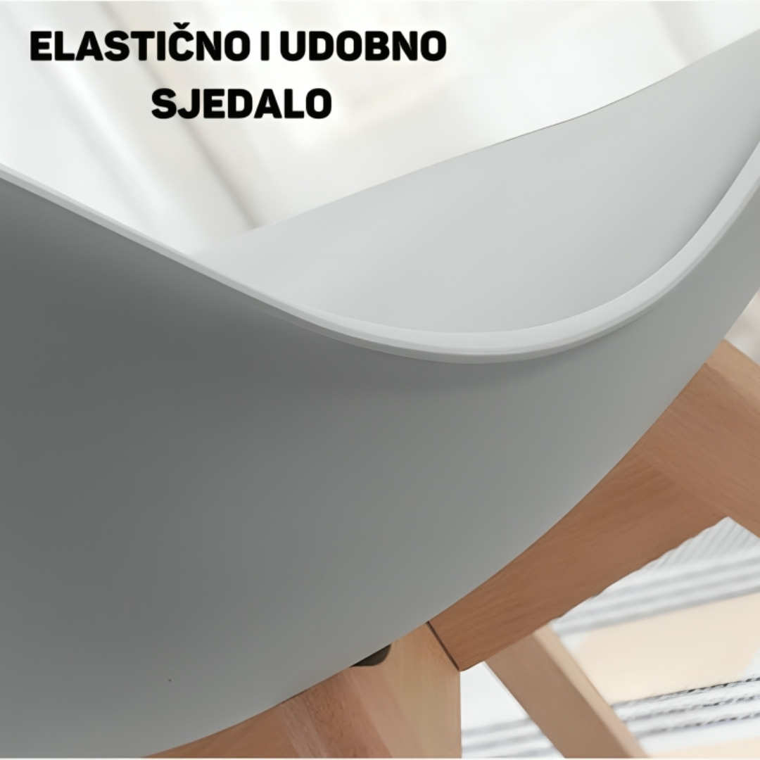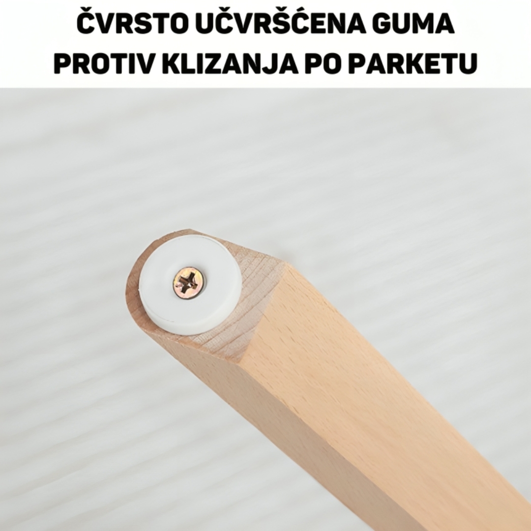 Posebna pažnja posvećena je detaljima, pa su noge stolice čvrsto učvršćene gumom koja sprječava klizanje po parketu, osiguravajući tako sigurnost i stabilnost.