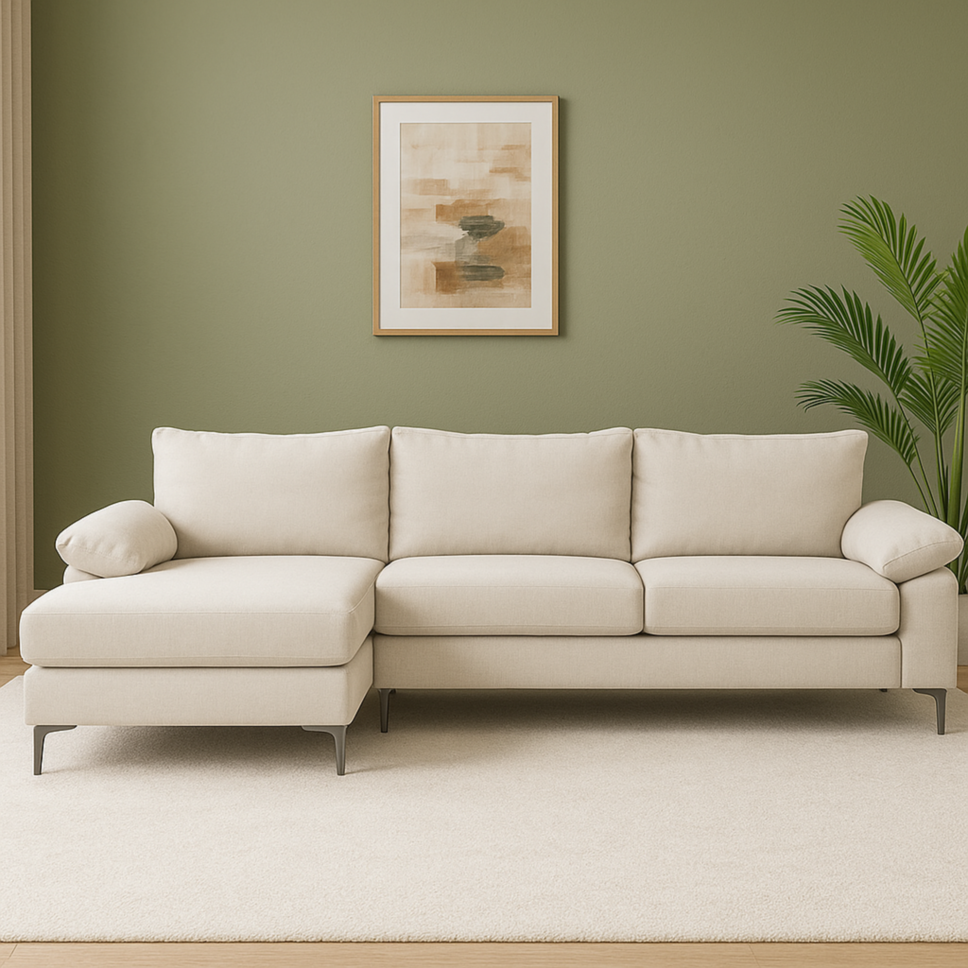 Unesite dozu luksuza i savremene udobnosti u svoj dnevni boravak s KAVEAH ugaonom garniturom – savršenim spojem modernog dizajna, funkcionalnosti i vrhunske izrade. Ova L-forma garnitura, presvučena u prefinjenu baršunastu tkaninu u elegantnoj bež boji, nudi ne samo estetiku već i maksimalnu udobnost za svakodnevni odmor i druženje.