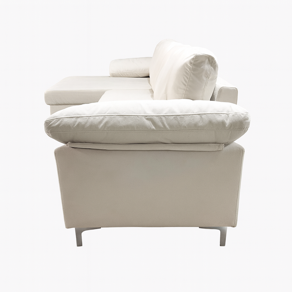 Unesite dozu luksuza i savremene udobnosti u svoj dnevni boravak s KAVEAH ugaonom garniturom – savršenim spojem modernog dizajna, funkcionalnosti i vrhunske izrade. Ova L-forma garnitura, presvučena u prefinjenu baršunastu tkaninu u elegantnoj bež boji, nudi ne samo estetiku već i maksimalnu udobnost za svakodnevni odmor i druženje.