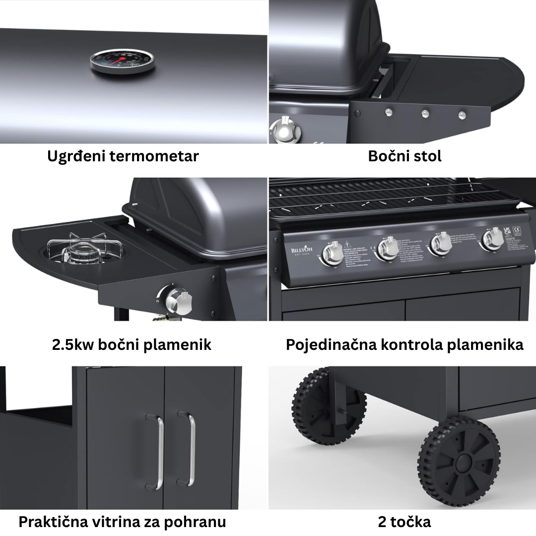 Podignite svoje kulinarsko iskustvo na otvorenom na višu razinu s Grilliant plinskim roštiljem. Dizajniran za ljubitelje roštiljanja koji traže savršen spoj performansi, prostora i modernog dizajna, ovaj roštilj s 4 glavna plamenika i dodatnim bočnim plamenikom omogućuje vam pripremu gozbe za cijelu obitelj i prijatelje u isto vrijeme.