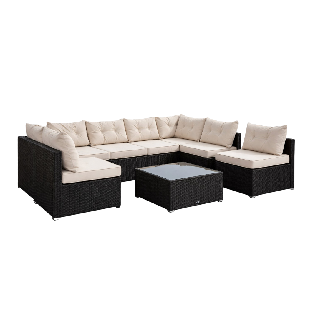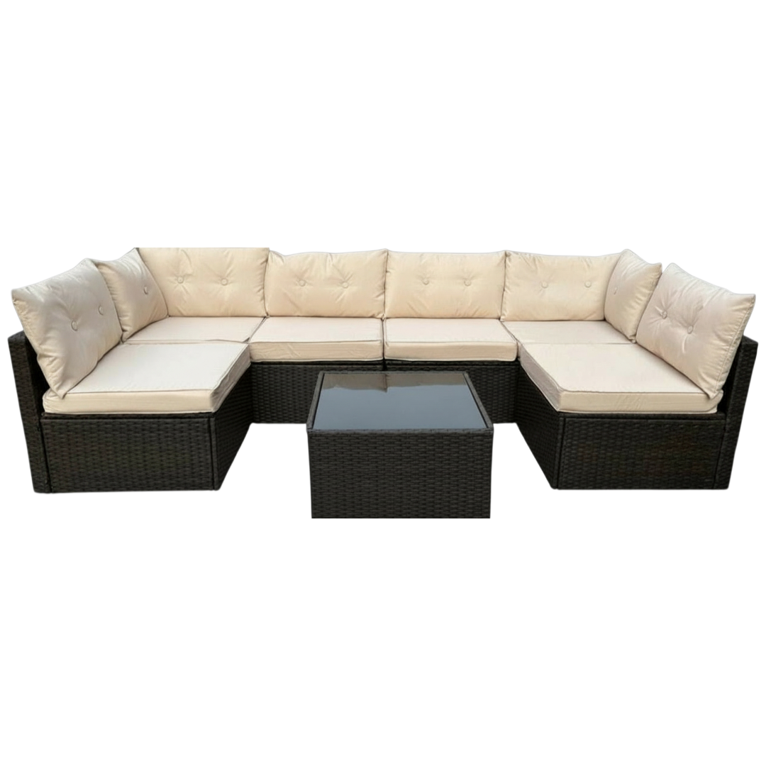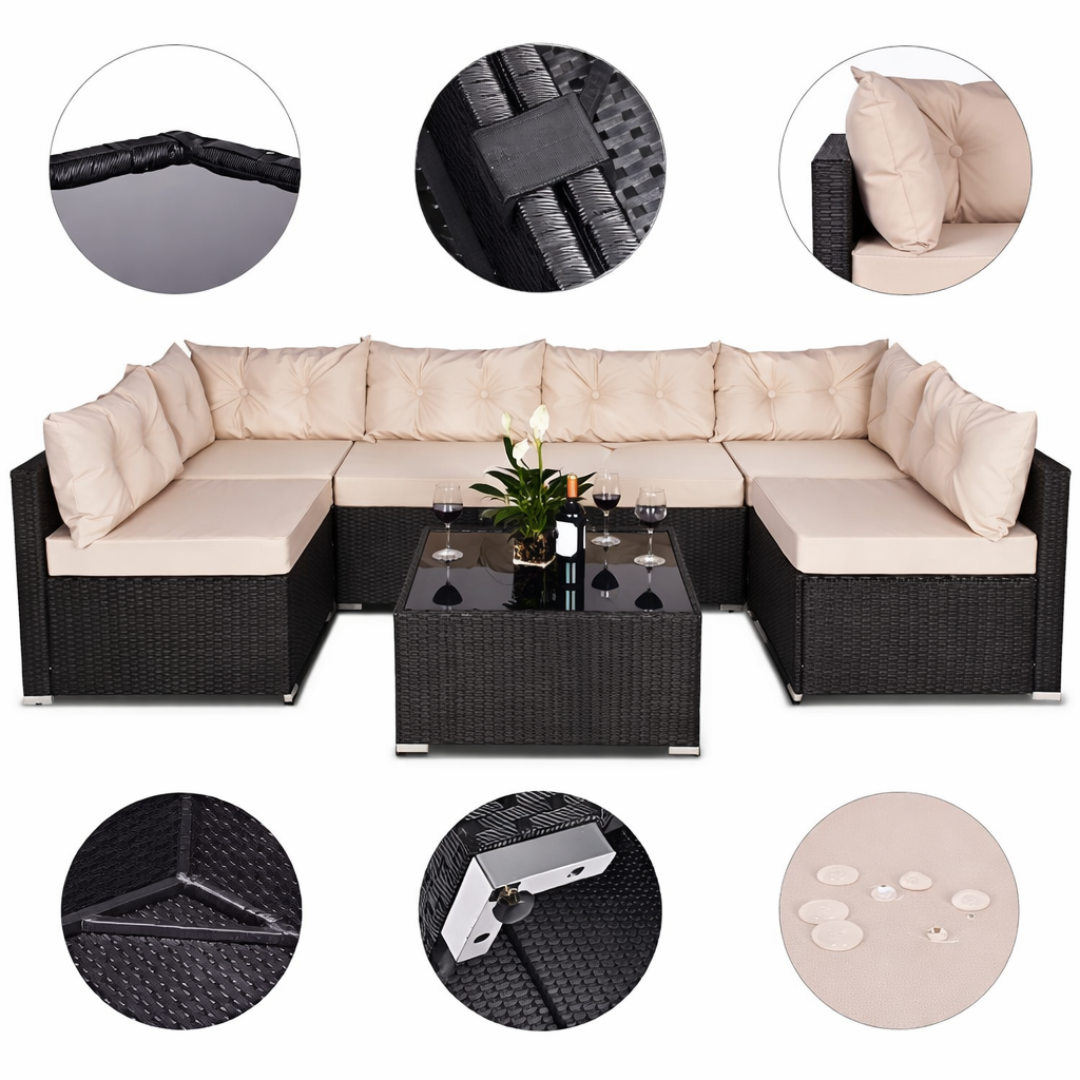Izdržljivost: Konstrukcija od visokokvalitetnog PE ratana otporna je na vremenske uvjete, dok je staklena ploča stola kaljena za dodatnu sigurnost.