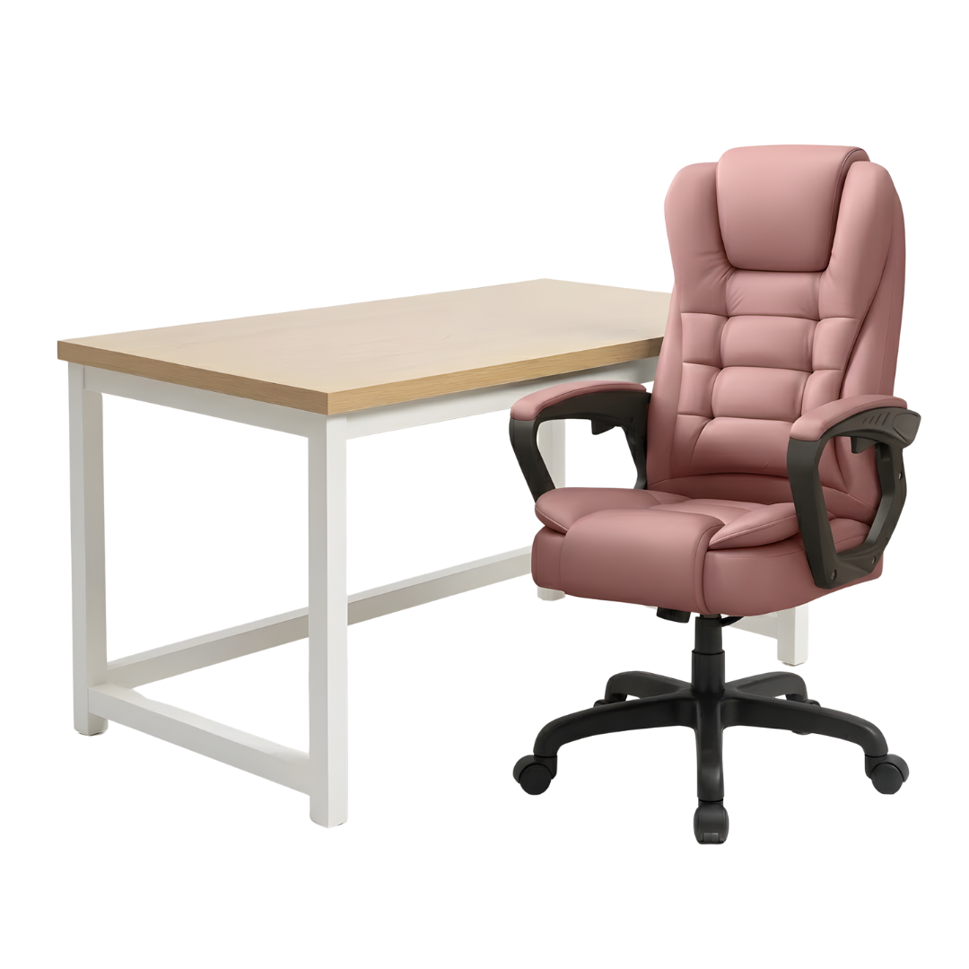 EOS RADNI STOL 100x60 BIJELI + MIRAGE STOLICA ROZA KOŽA