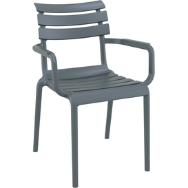 Odlikuje se modernim izgledom sa horizontalnim letvicama na sjedištu i naslonu, što pruža optimalnu podršku i udobnost. Integrisani nasloni za ruke dodatno povećavaju osjećaj ugodnosti tokom sjedenja. Lagana, ali stabilna konstrukcija omogućava lako premještanje i skladištenje.